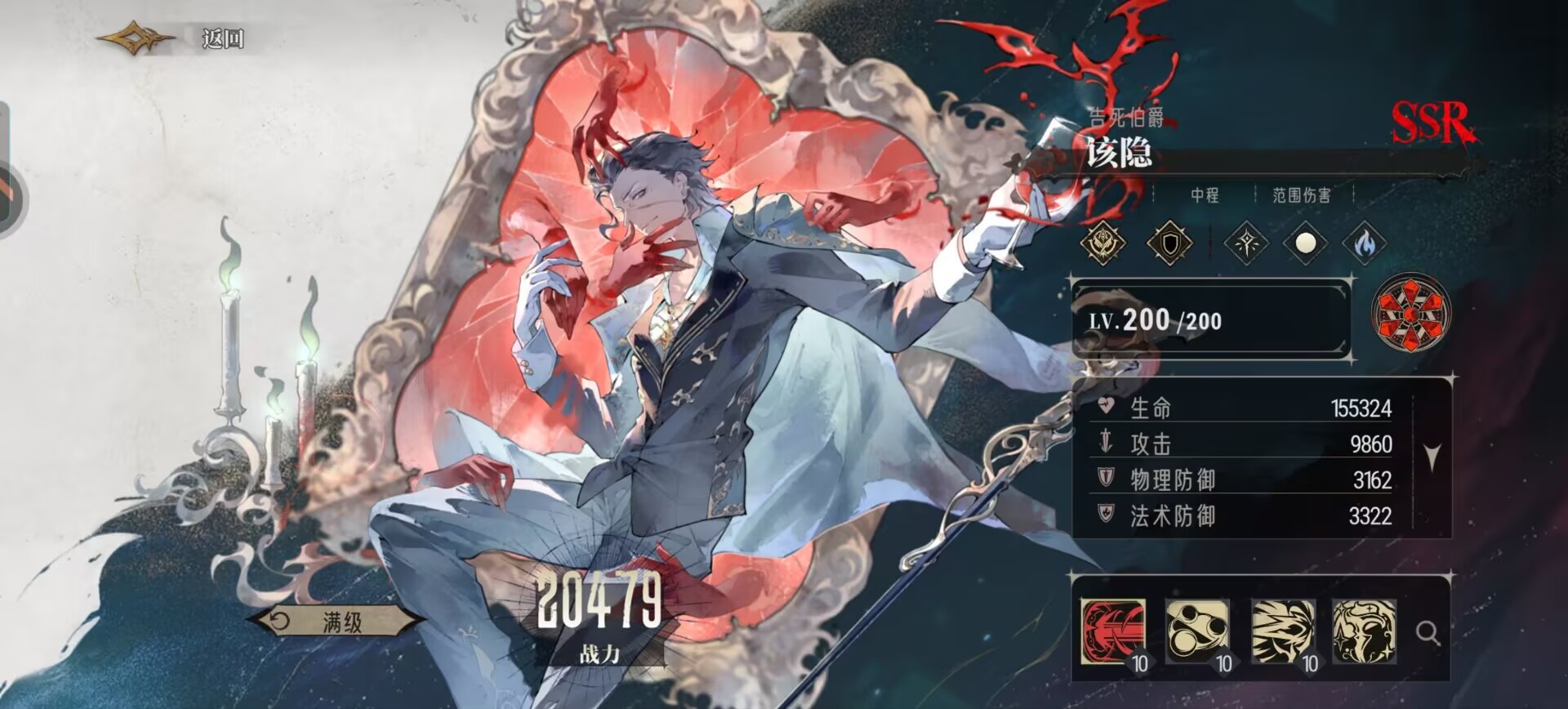 第三天出现的限定角色!目前版本毫争议的最强T0法师!强大aoe群伤+战技蝙蝠必暴击+弹射伤害+吸血为一体的顶级法师!无论是pve还是pvp强度都是独一档的存在。大佬必抽角色!