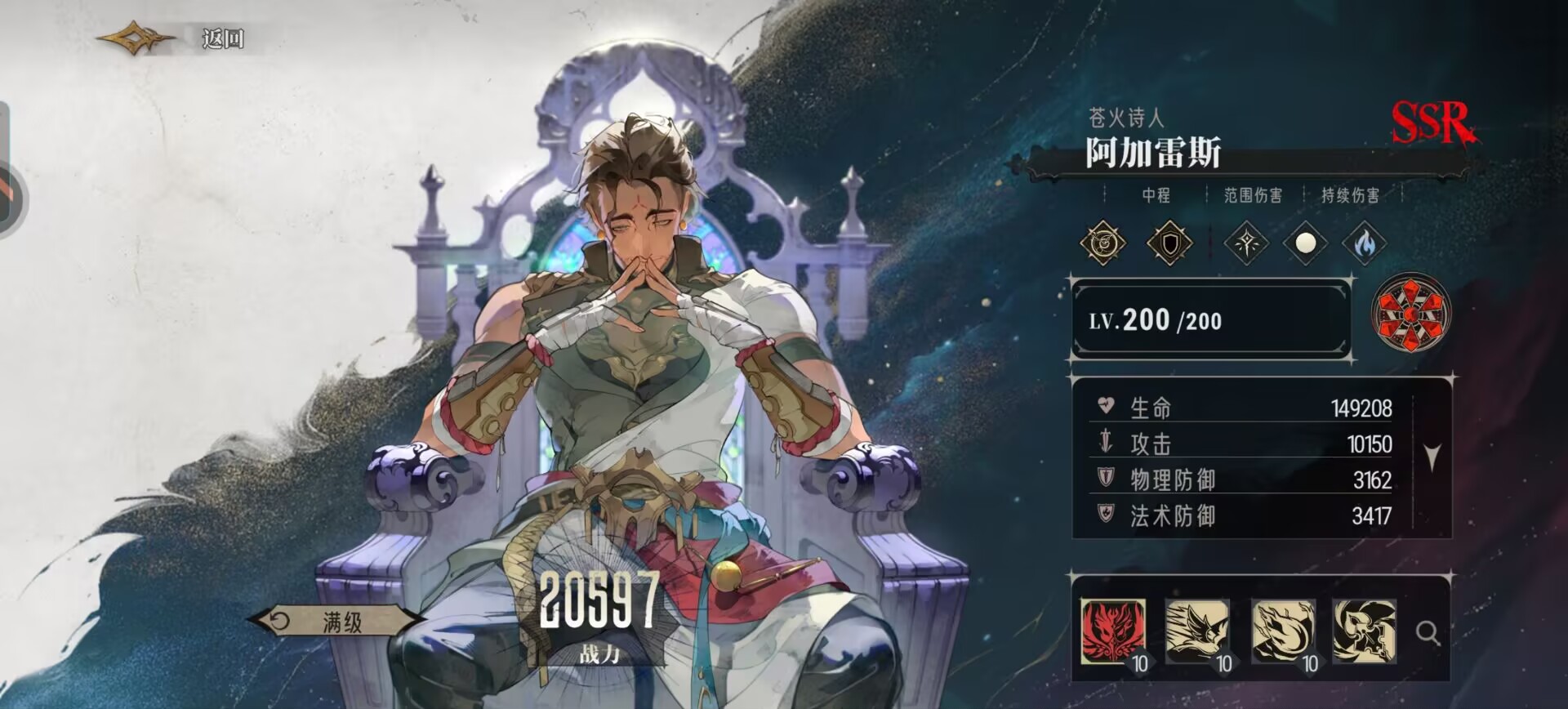 普通状态的阿加雷斯!是dot流核心前中期阶段的核心输出,兼顾单体和范围伤害,重要的是可快速叠痛楚!1个奥义就可以叠5层!