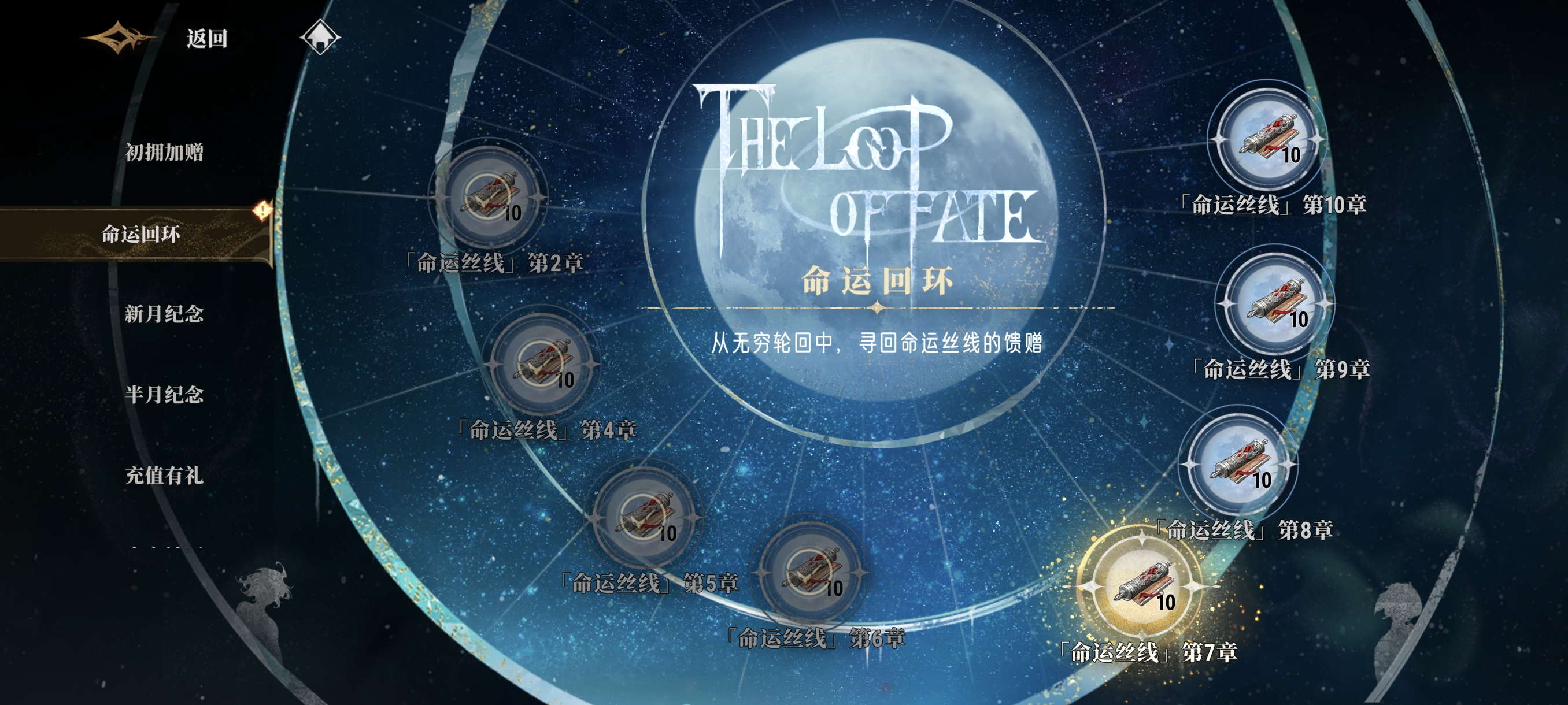 第三天上线,主线第七章推完,拿到命运回环的十连,再把所有能领的签到奖励都领了,用月之啼补齐今天的第1-3次十连抽,完美碎魂也能合一个SSR出来,一共拿到4个没用的红卡。