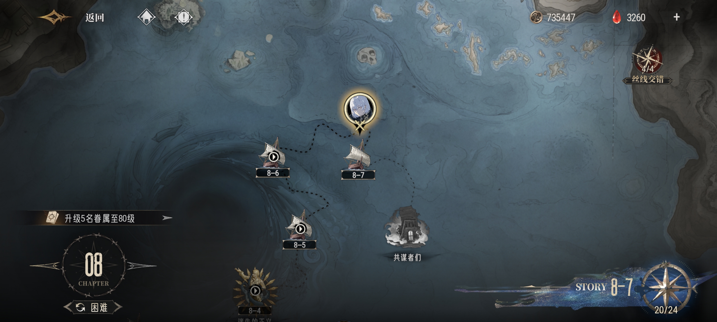 继续推进主线,一路推到8-7后卡住,用月之啼补齐今天的第4次十连抽,回过头把前面打不过的隐藏关和困难主线都清一清。