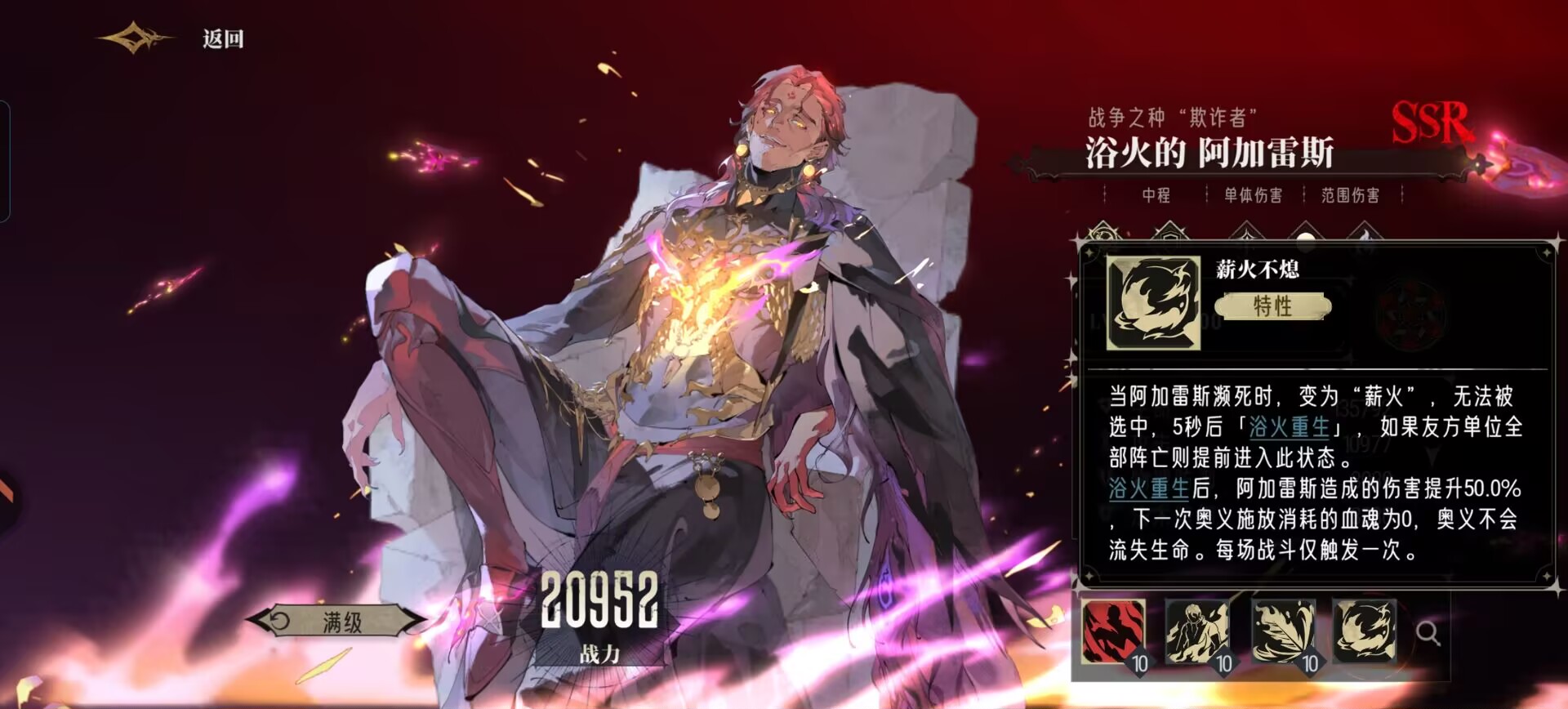 最后:以上就是狮子给大家推荐的【浴火阿加雷斯】的阵容玩法攻略,希望能够帮助到大家!喜欢阿加雷斯的玩家可以玩!