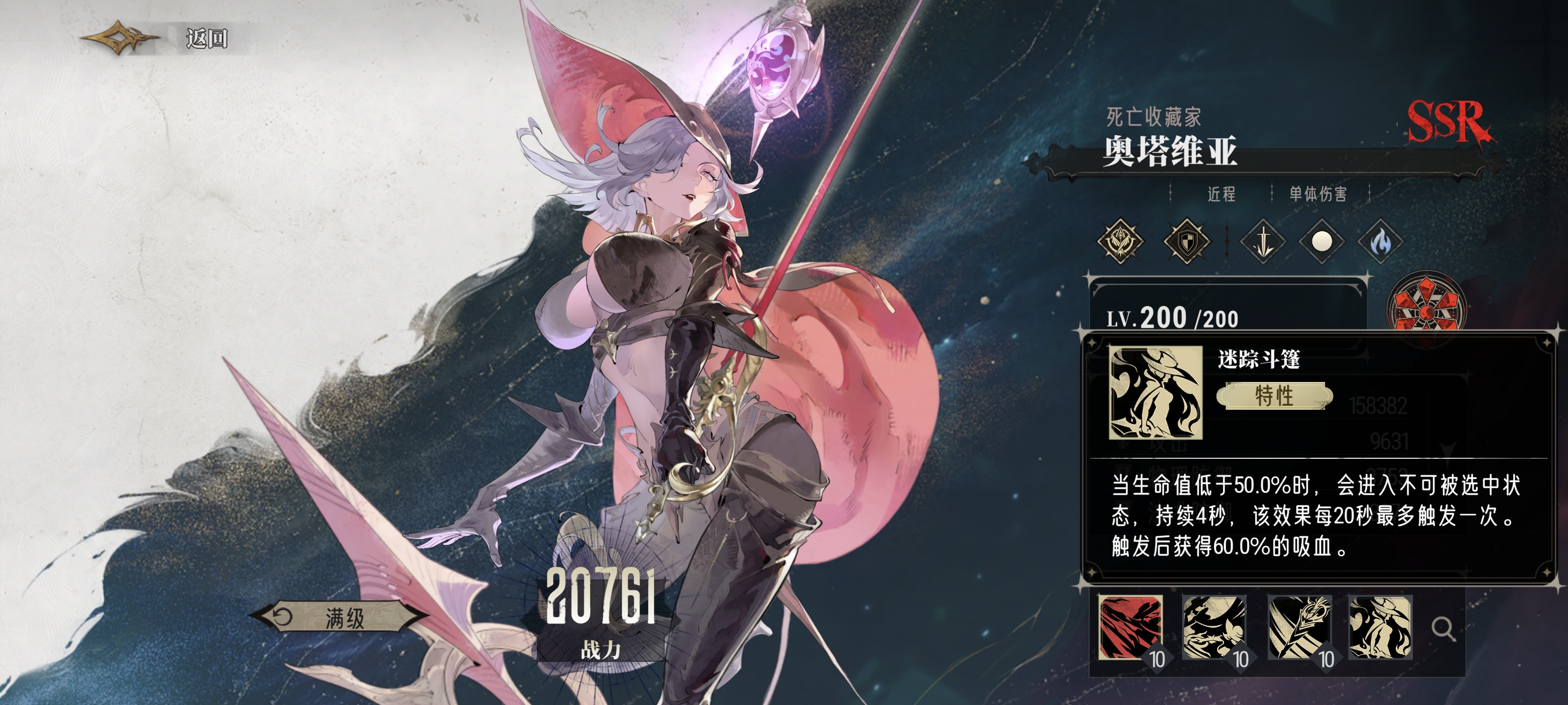 拉米娅为法术伤害,搭配副C奥塔维亚挂【受法伤提升】能大幅提高拉米娅的伤害。同时她自身保命能力强,残血时隐身不可选取4秒,并永久获得60%吸血,可以趁隐身期间将血吸回来保命。