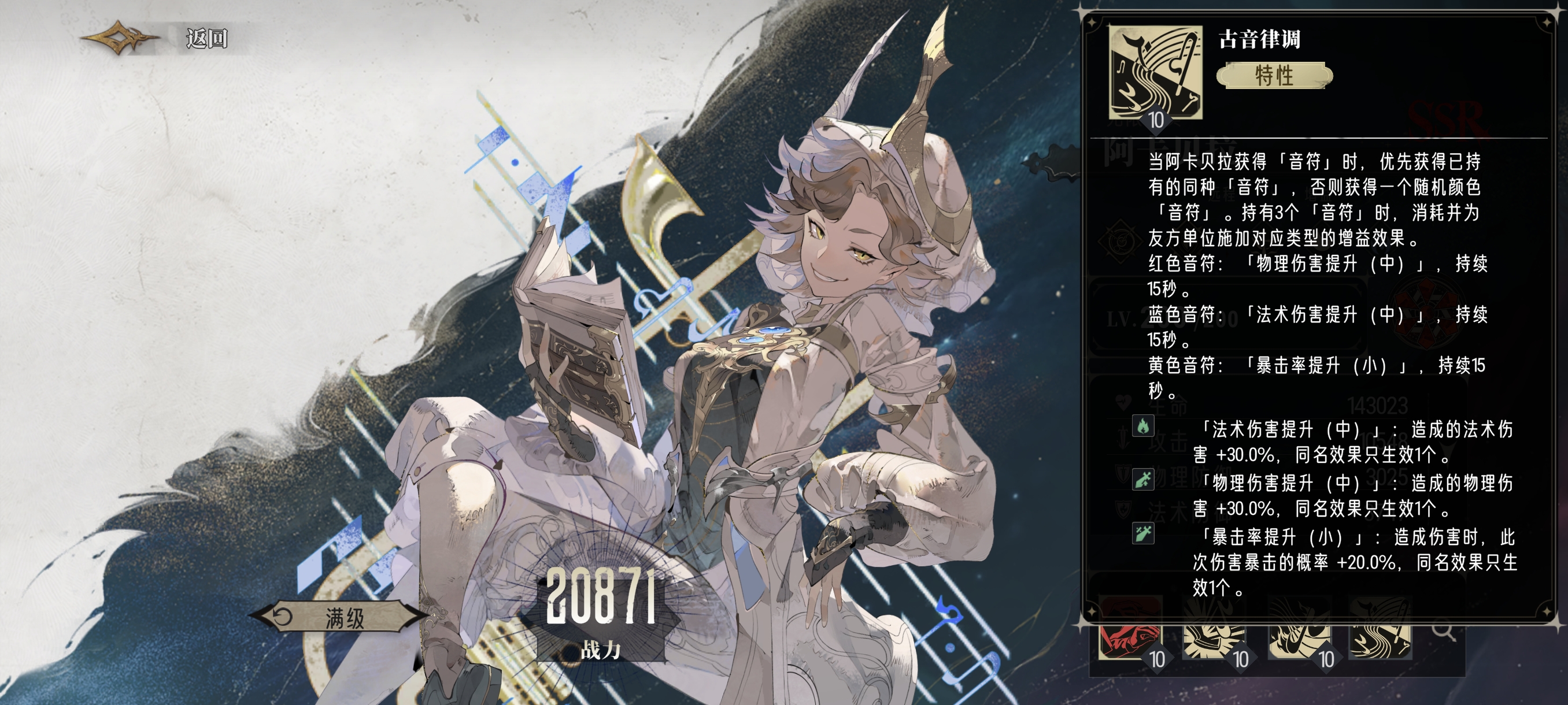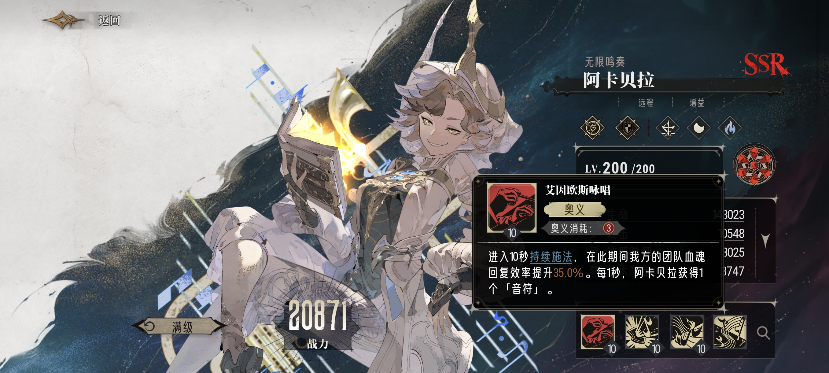 阿卡贝拉是普卡最强辅助,拥有极稀有的血魂回复效率提升,特性中的法伤提升和暴击提升主副C都能吃到。