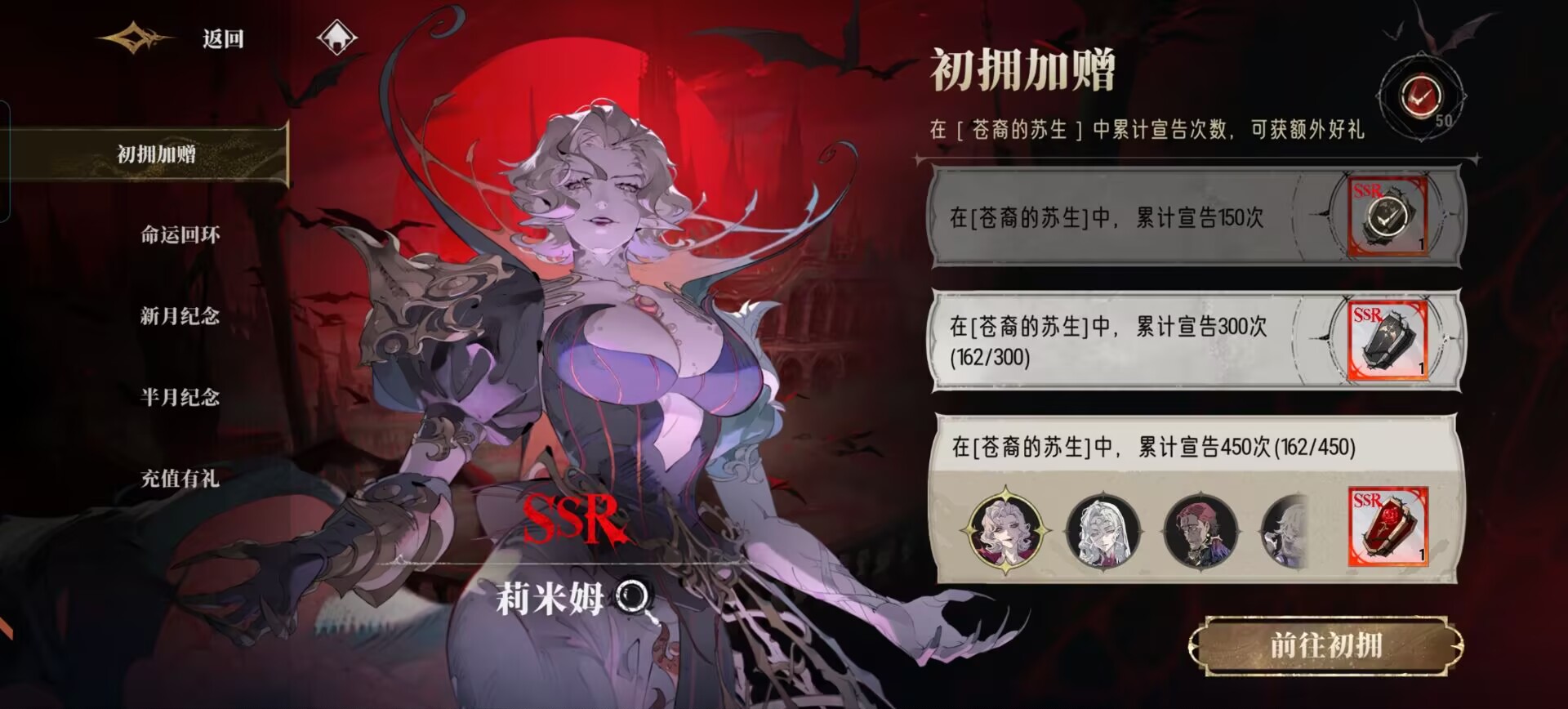 一:【自选箱子】选择思路。在我们常驻卡池【苍裔的苏生】有个福利活动名叫:《初拥加赠》。