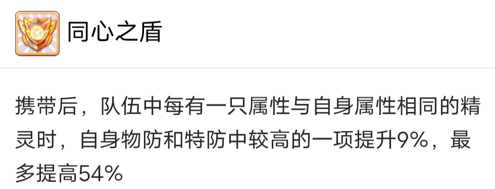 同心之盾需要搭配钢系道馆使用,在自身可以帮助队友提升伤害的同时,队友也可以为自己提高自己的坦度,可以说是两全其美,前提是需要较为强势的钢系队友。