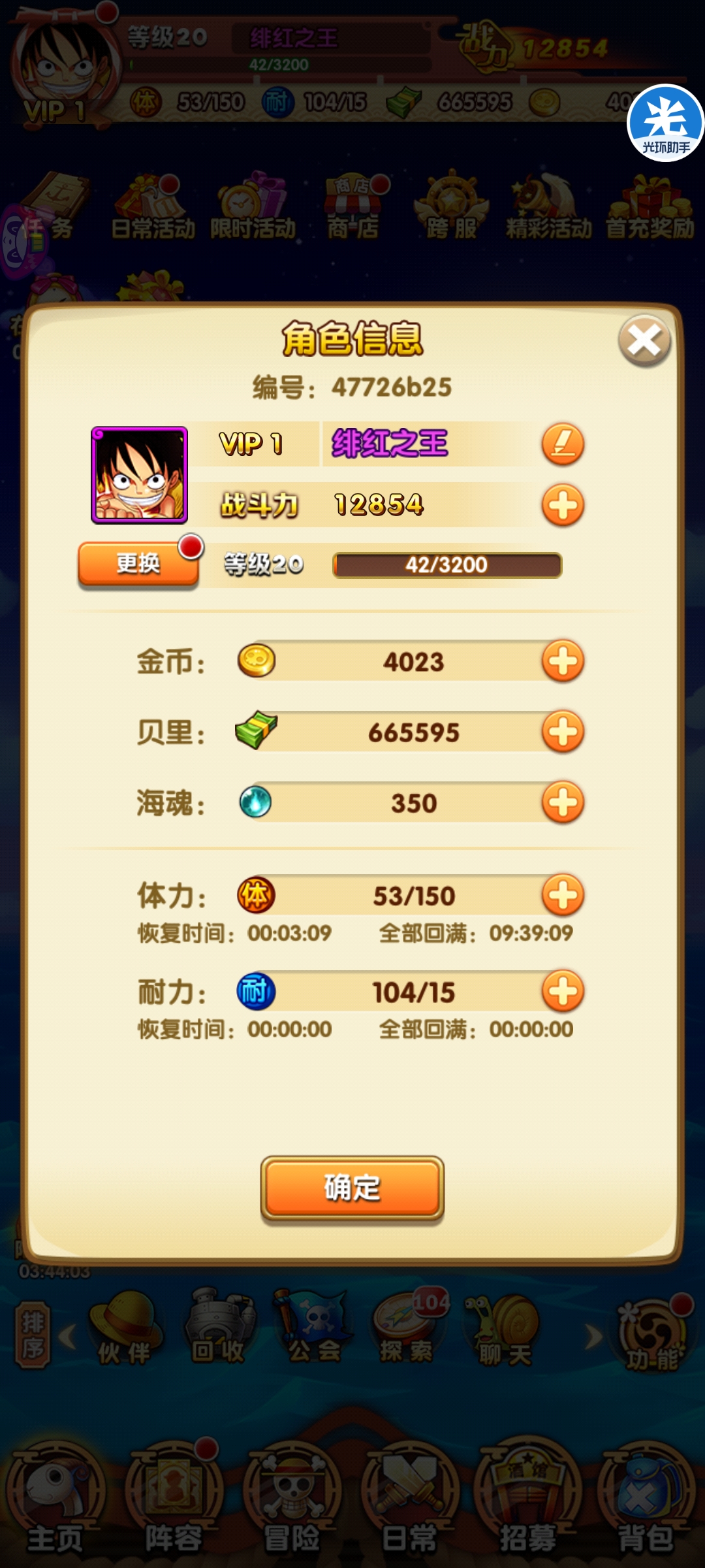 第十天 1.金币依旧攒着,什么都不买,除了每周的体力包,和*商店限时商店的体力包,还有每天酒馆商店的要买满,有多少买多少 2.到52级后体力只刷觉醒副本,因为觉醒道具的来源只有觉醒副本,缺伙伴影子可以刷日常副本,然后再把不需要的伙伴影子融掉在伙伴商店换其他需要的影子。缺进阶石可以刷海王副本,用威望去换进阶石。缺装备可以刷推进城,用装备结晶去换[图片评论]
