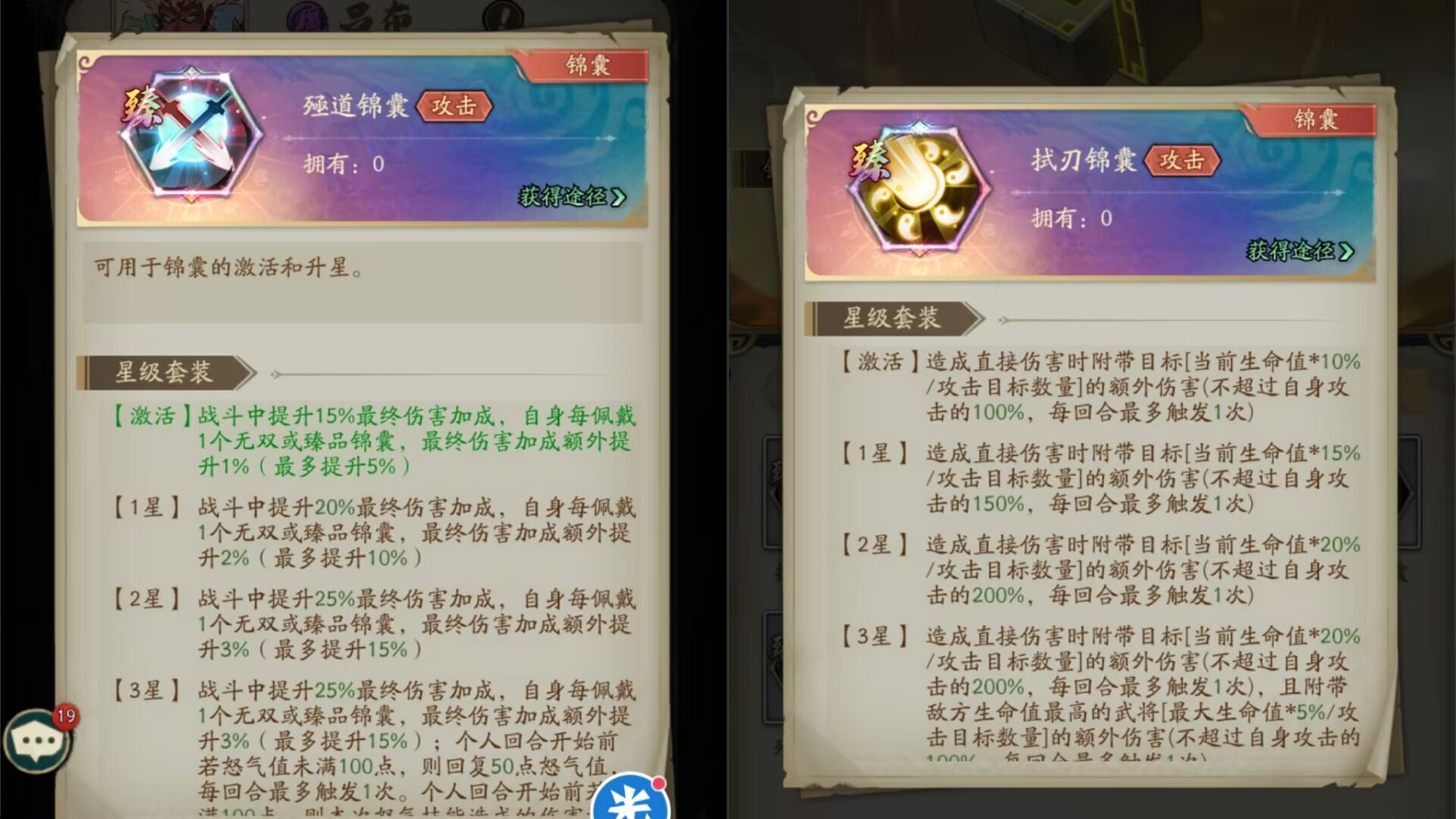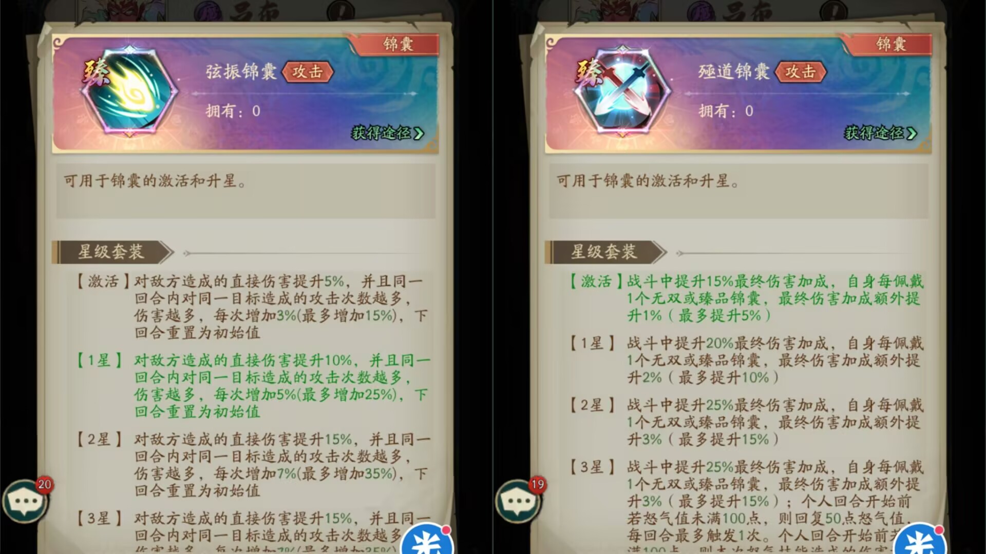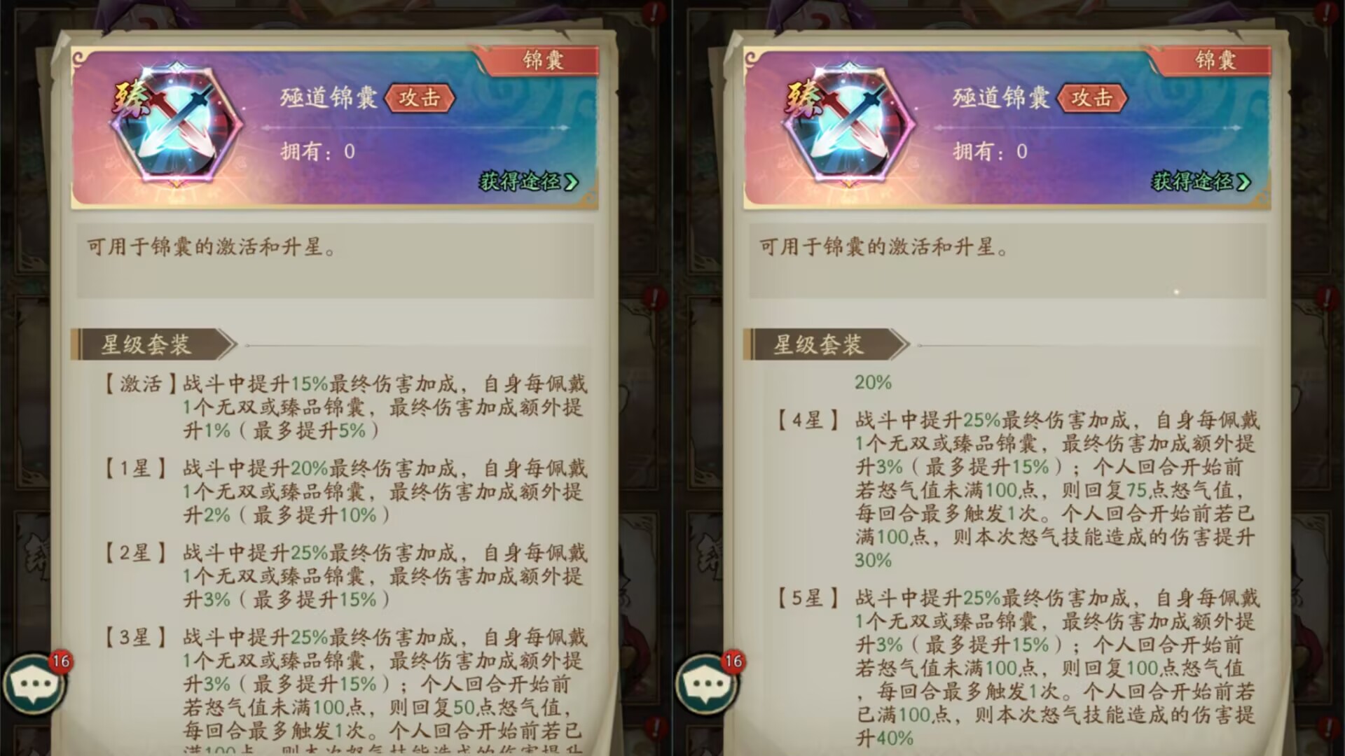 ②如果自身每佩戴一个无双或者臻品锦囊,最终造成的伤害可以额外提升2%。