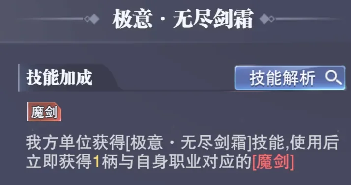 - 没有点蓝色的“剑花”,则意味着没有激活全队队友新增的【极意·无尽剑霜】技能效果,这个技能就是那个可以快速略过队友回合且队友还能额外补一根魔剑的技能