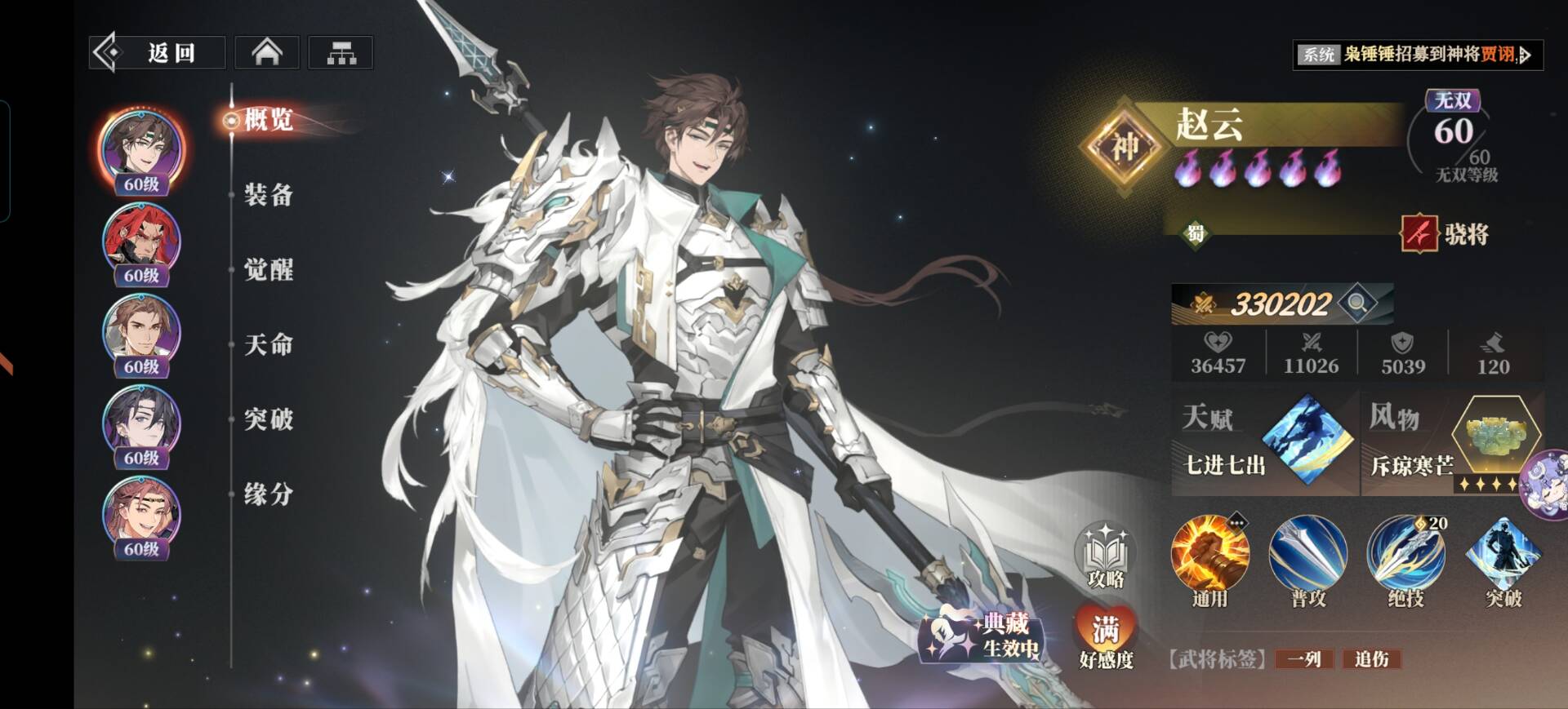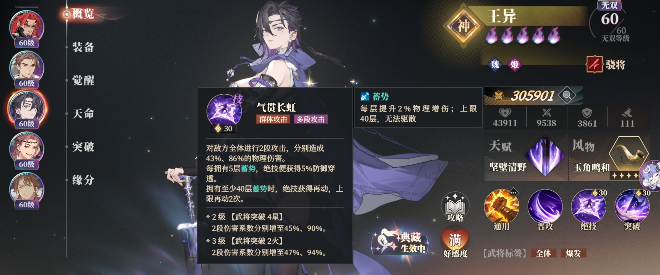 3:王异突破技能:【号令三军】。