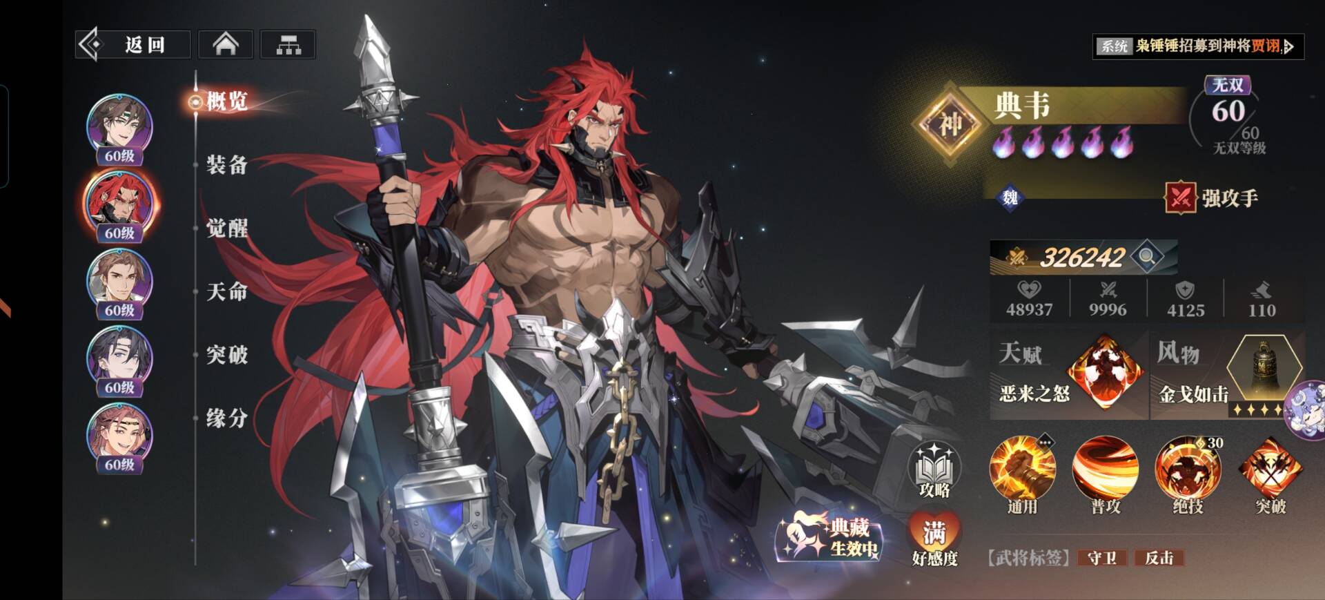 自身的蓄势机制也很适合魏国玩典韦+甄姬+张辽+张颌体系的玩家抽取。
