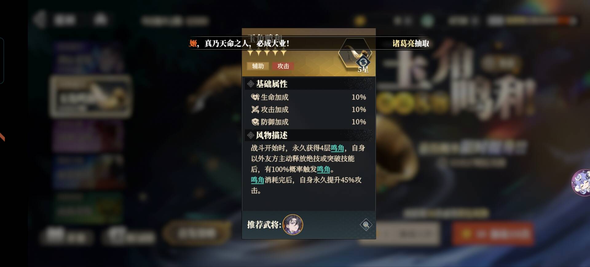 风物4层鸣角第一回合是可以释放完的,配合3火的王异就是可以叠加16层的蓄势。