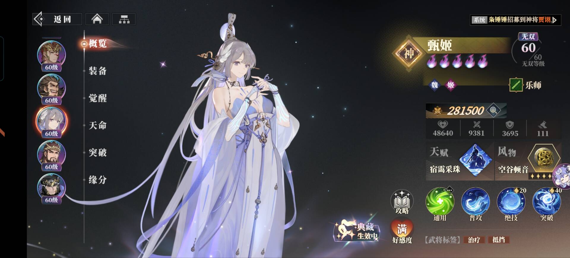 特别是甄姬这种释放突破技能需要40点战意消耗武将来说,犹如锦上添花!可以减少队伍战意的消耗压力。