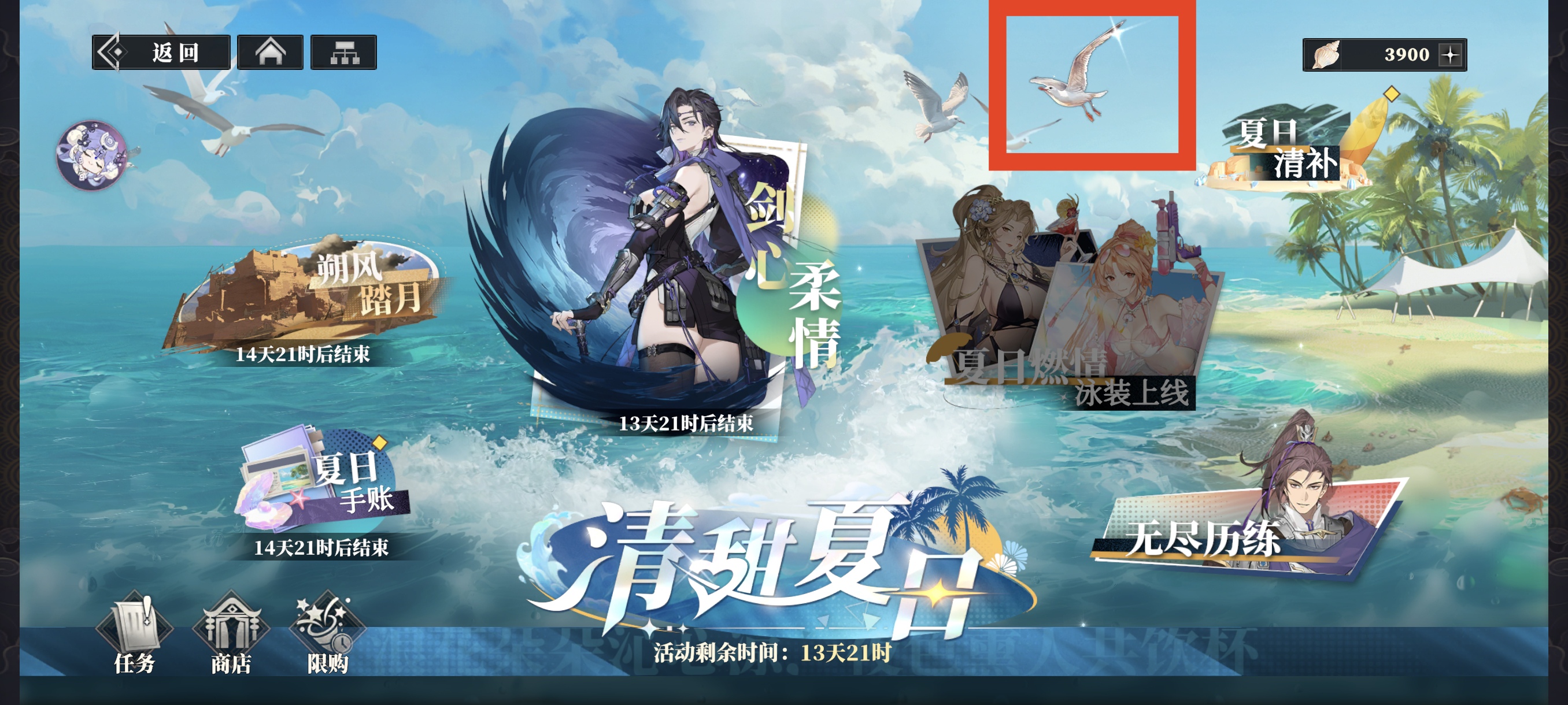 二、夏日手账活动期间,每天可在活动主界面的信鸽和剧情关卡中获取手账内信息,整个活动可共计白嫖1000三山壁,每天记得拾取!