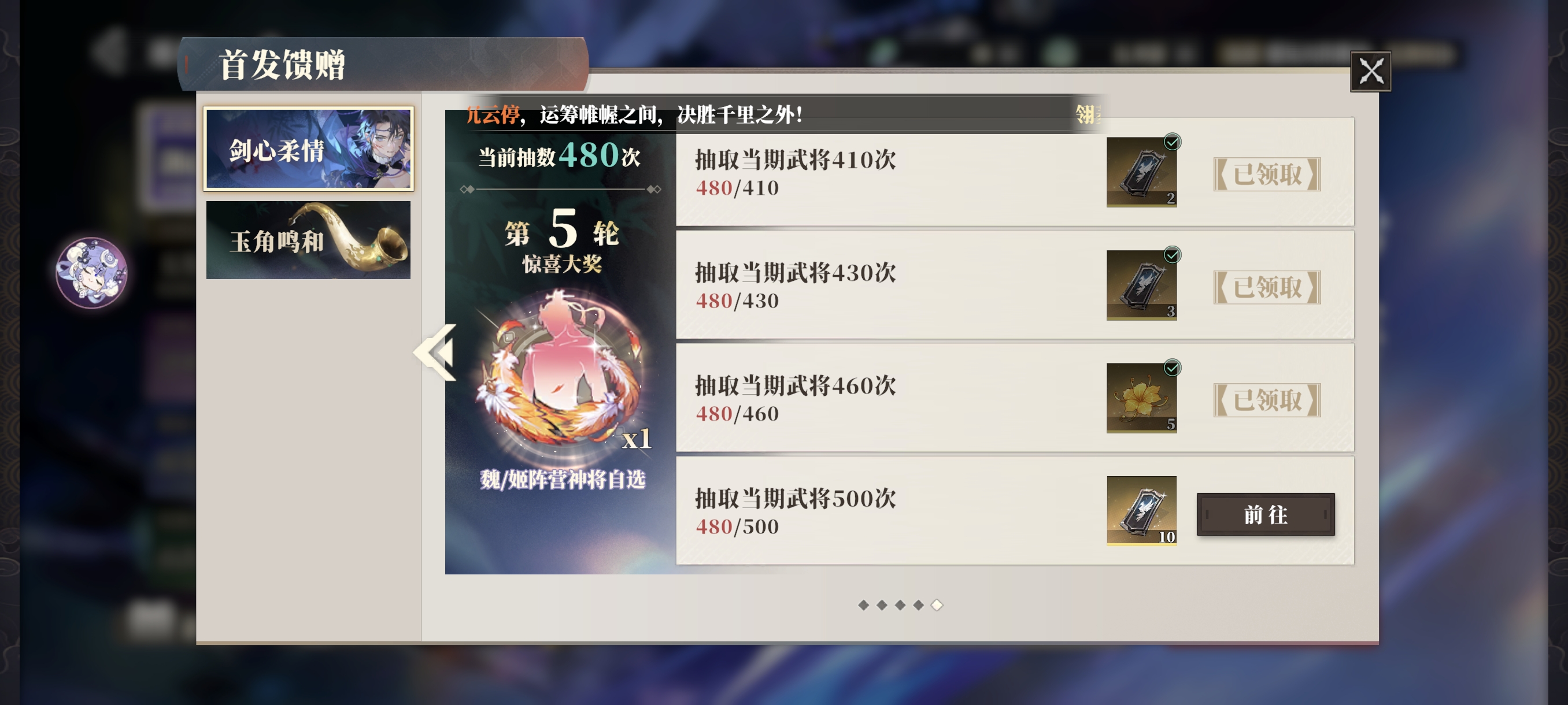 本次除了正常的卡池以外,首次新增了【首发馈赠】的累抽奖励。