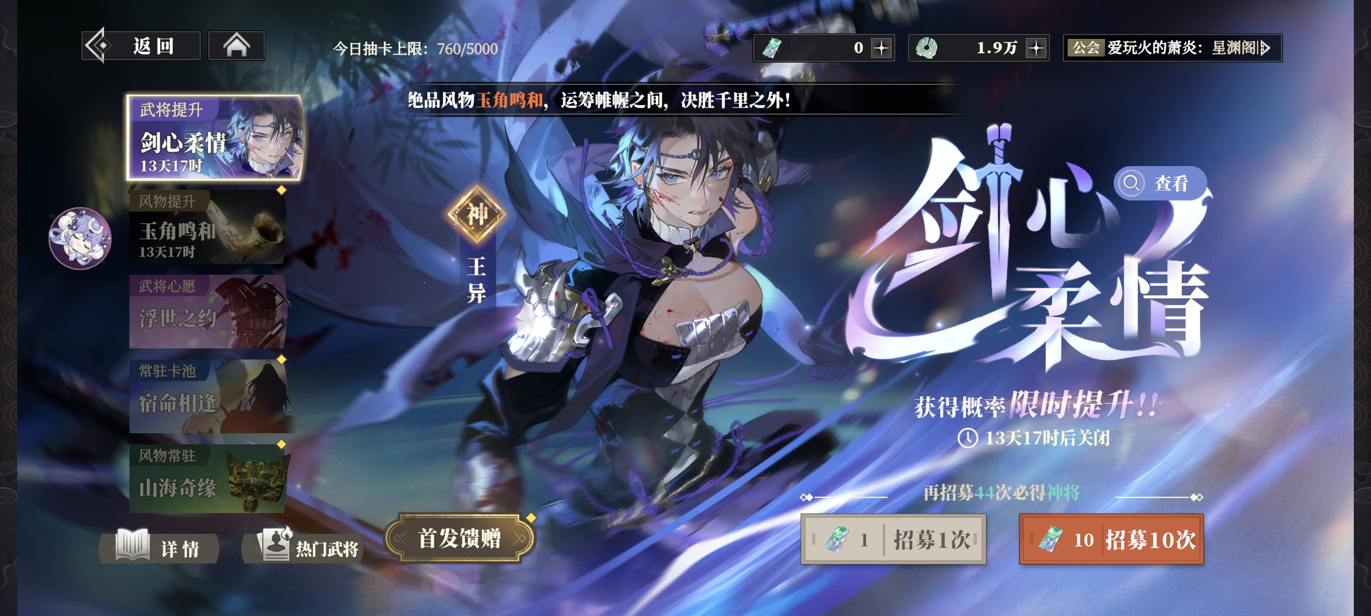 三、剑心柔情王异和她的推荐风物-玉角鸣和两个限定卡池开启。