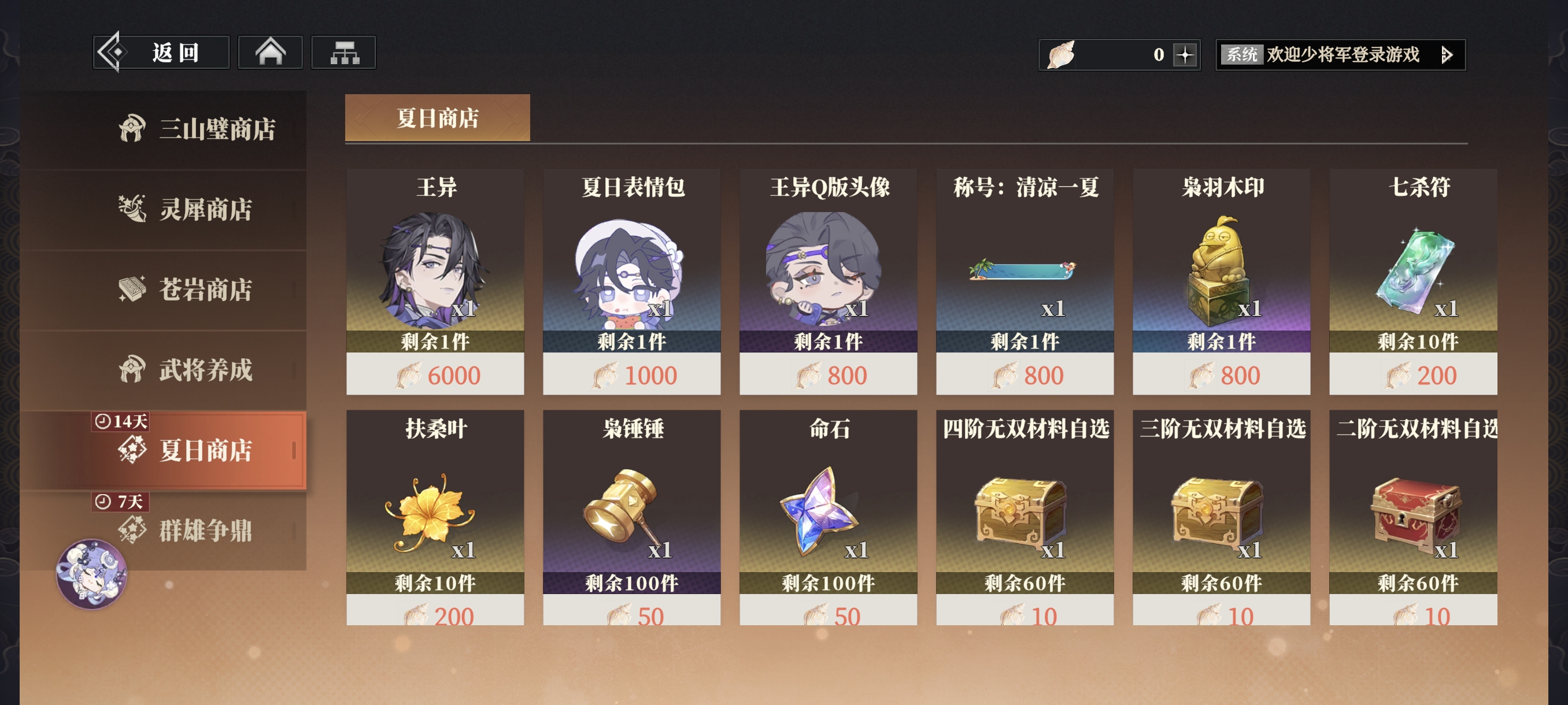 活动商店中可免费白嫖一个王异本体,还有心愿抽、风物抽、枭锤锤、命石、觉醒养成材料等众多奖励可进行兑换,基本都能拿满,就不做优先级推荐了。