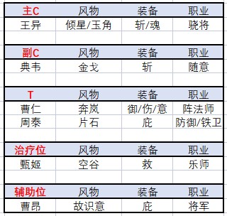 配队建议:曹仁+周泰+甄姬+曹昂+典韦+王异。