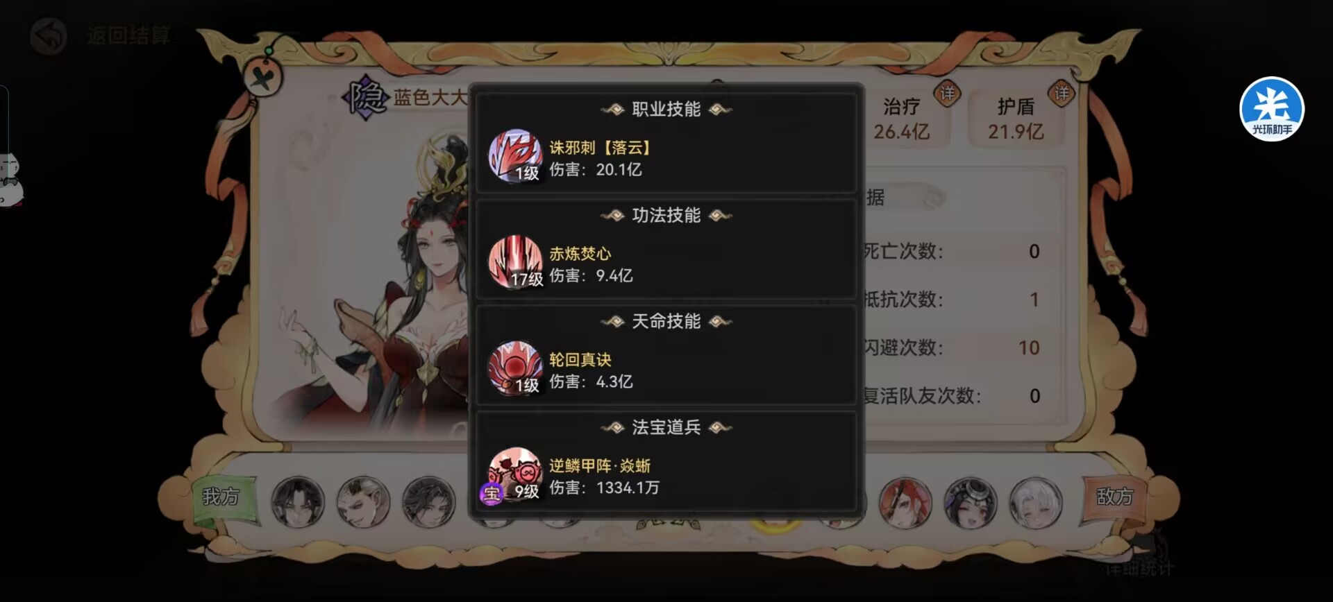 南宫婉输出数据分析:本场战斗也是狮子失败告终!可以看出敌方南宫婉主要输出来源在于:专属道兵和赤练功法。