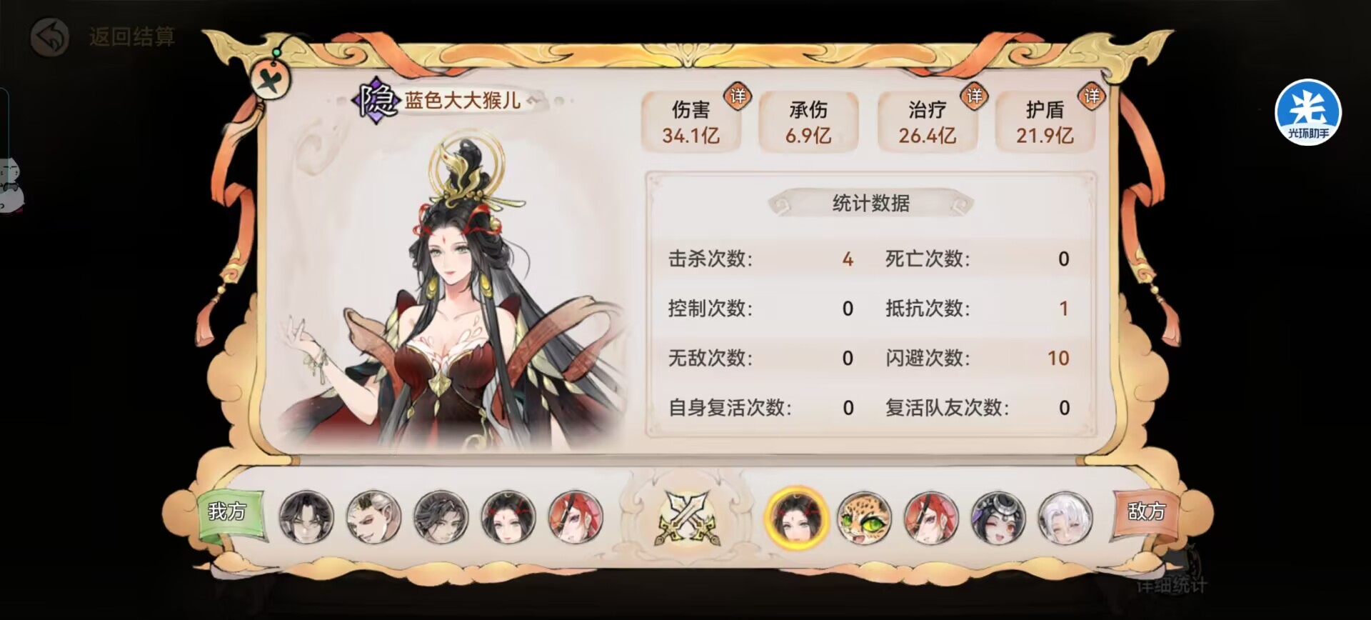 虽然敌方阵容搭配不怎么样,但是狮子仍然是输了!敌方南宫婉获得mvp!打出34亿+的伤害。