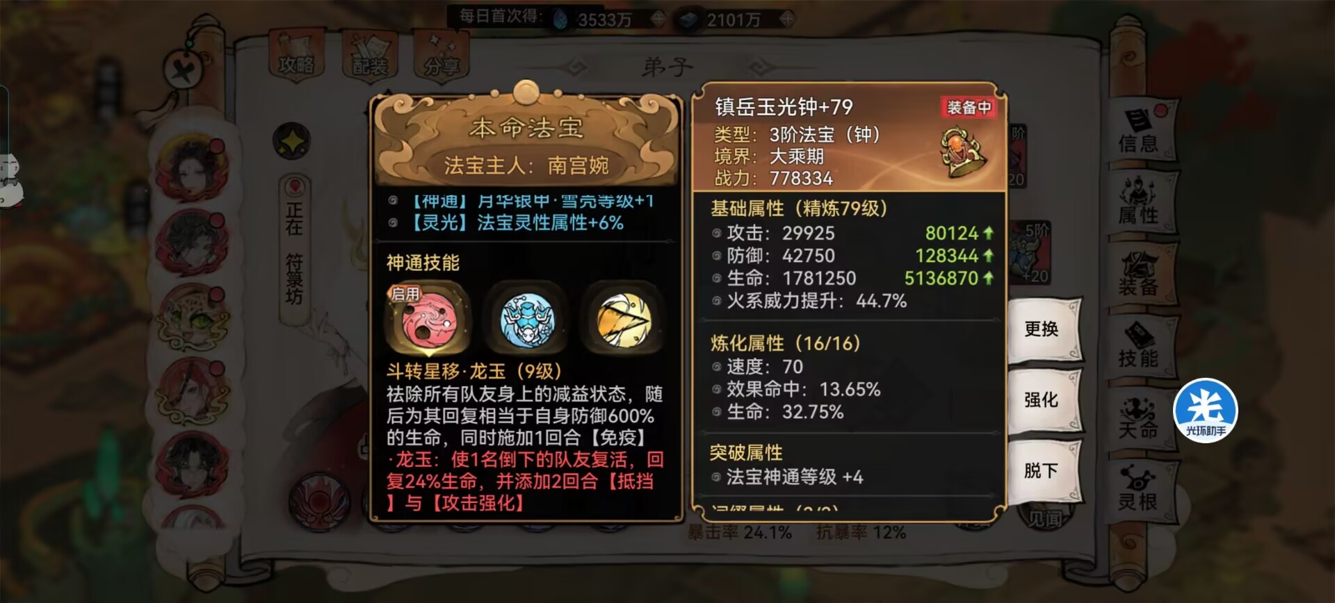 3:【输出南宫婉】法宝推荐:3阶玉。