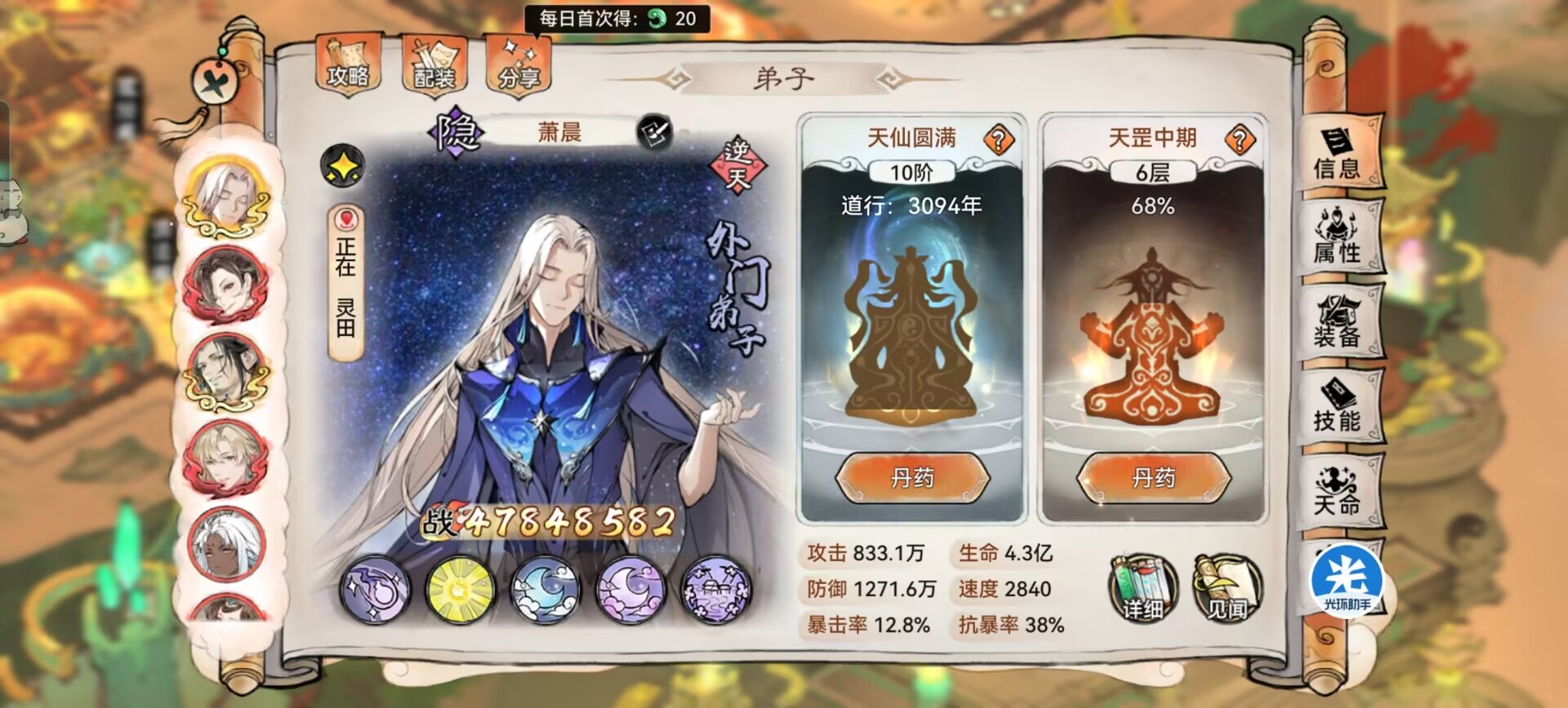 ①萧晨:偏向纯辅助型的弟子,自带锁血和无敌,生存方面比婉儿优秀!虽然可以带功法苍鲲打伤害,但是伤害方面是远远不如南宫婉。
