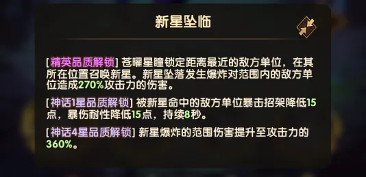1星使aoe伤害额外降低敌方暴击招架&暴伤耐性