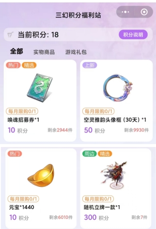 9、公众号【三国志幻想大陆】/微信小程序【三幻积分站】签到,每月给1*魂将券、1440元宝、召唤券石头等奖励。