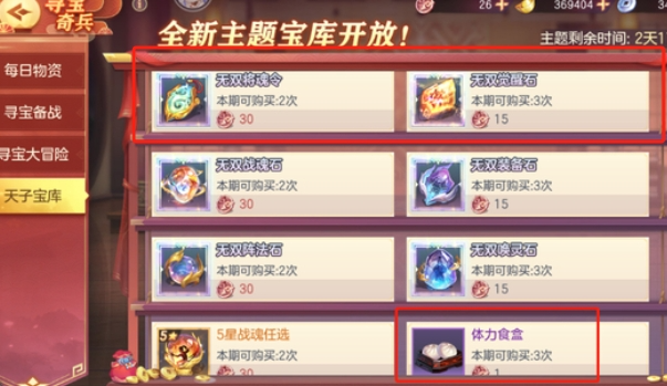 所有武将+20之前,每期宝库的【夺宝币】建议【包子拉满】,剩余部分全部屯着等【灵石】主题时,拉满【三阶稀有灵石任选】或者按期补足觉醒石或战魂石等缺口。