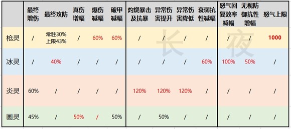 1、基础的增减伤区间内,枪灵更偏向与爆伤跟破甲的内卷,算是更适配直伤体系的善灵。