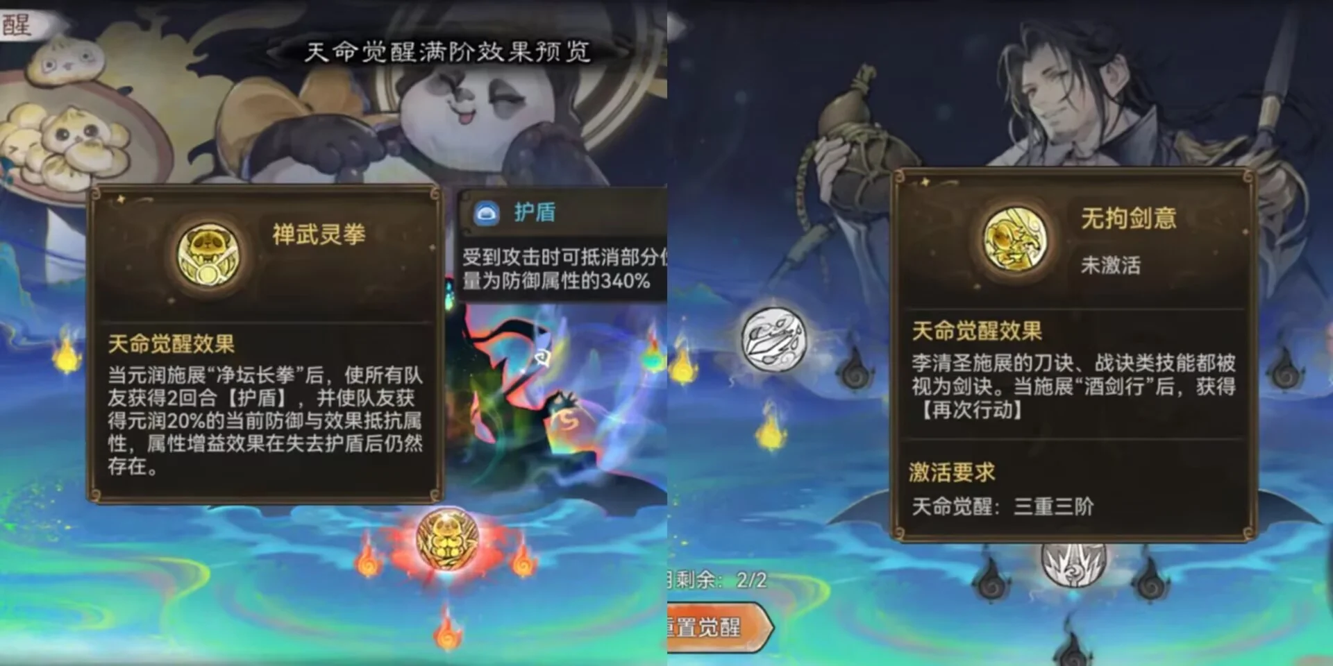 熊猫觉醒后无论是对团队的保护能力还是增益都是大幅度提升的!