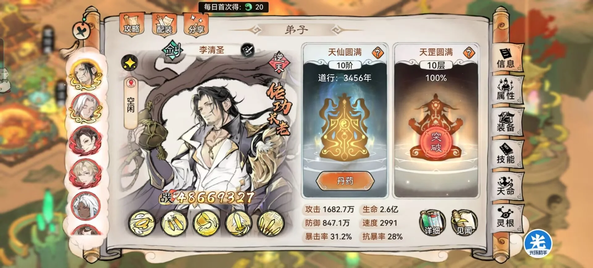 这里有玩家会问:狮子,我是老区的玩家,但是之前没有抽老李!现在可以补抽玩老李吗?答:可以!但是不用急!因为就算你把老李补到仙三了!(˃ ⌑ ˂ഃ )没有足够的天命真元也是无法觉醒的!
