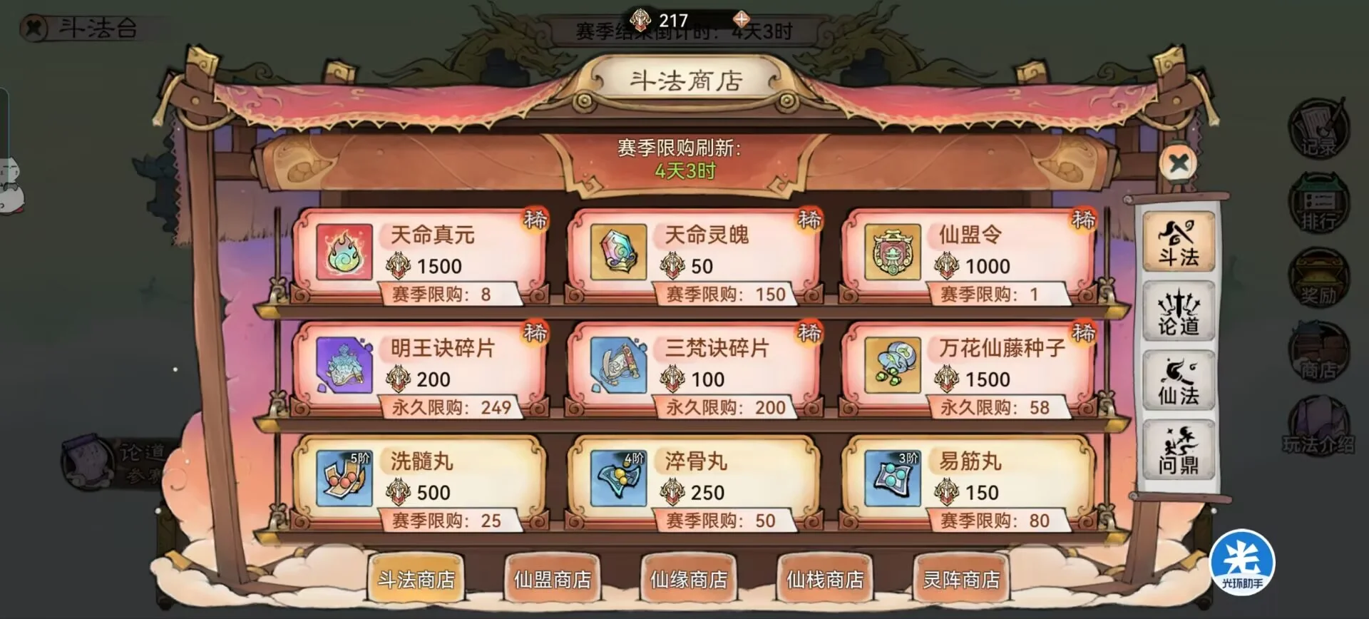 而且100个天命觉醒材料,在白嫖的情况下只能从:斗法台商店和仙界商店中获取!