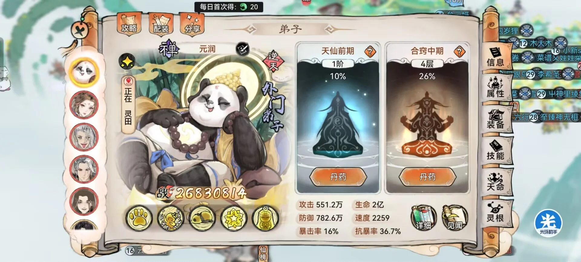①所以新区的平民玩家还是继续培养五行辅助禅即可!没有必要消耗金钱和资源去优先养熊猫。养熊猫还不如养老李!
