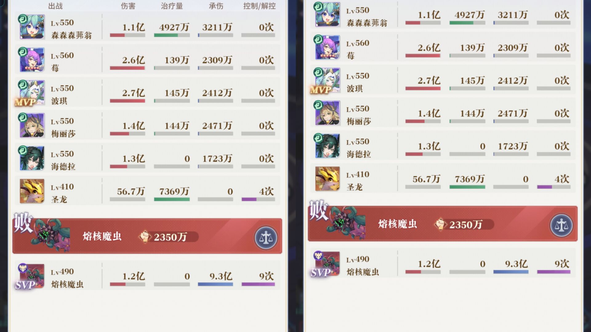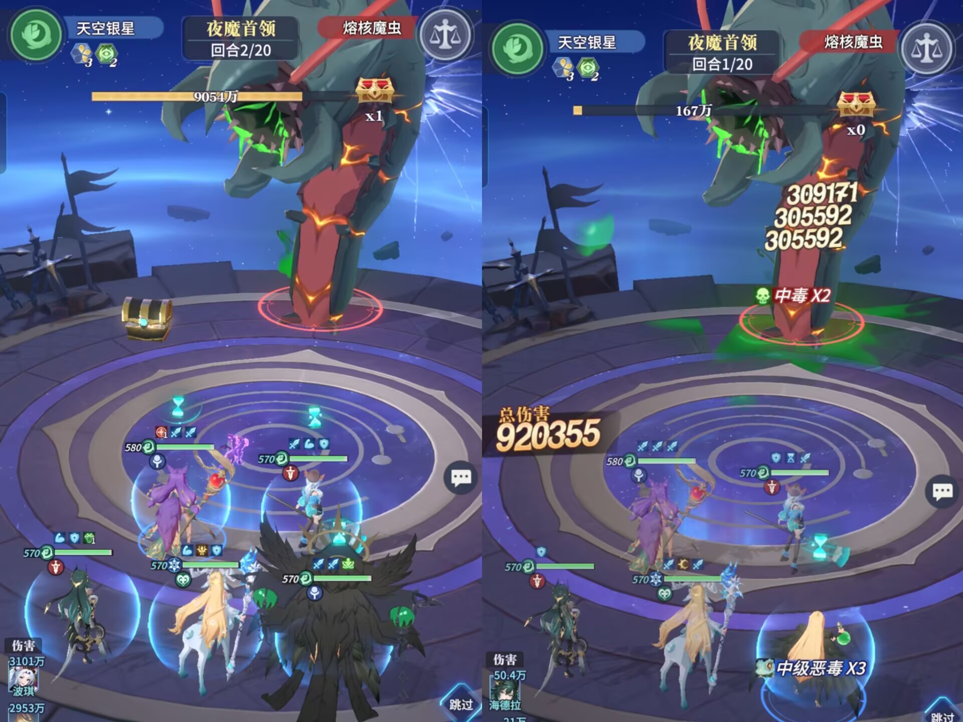 ②第二组【永恒1星白板海德拉】打夜魔:魔虫伤害为1.3亿。