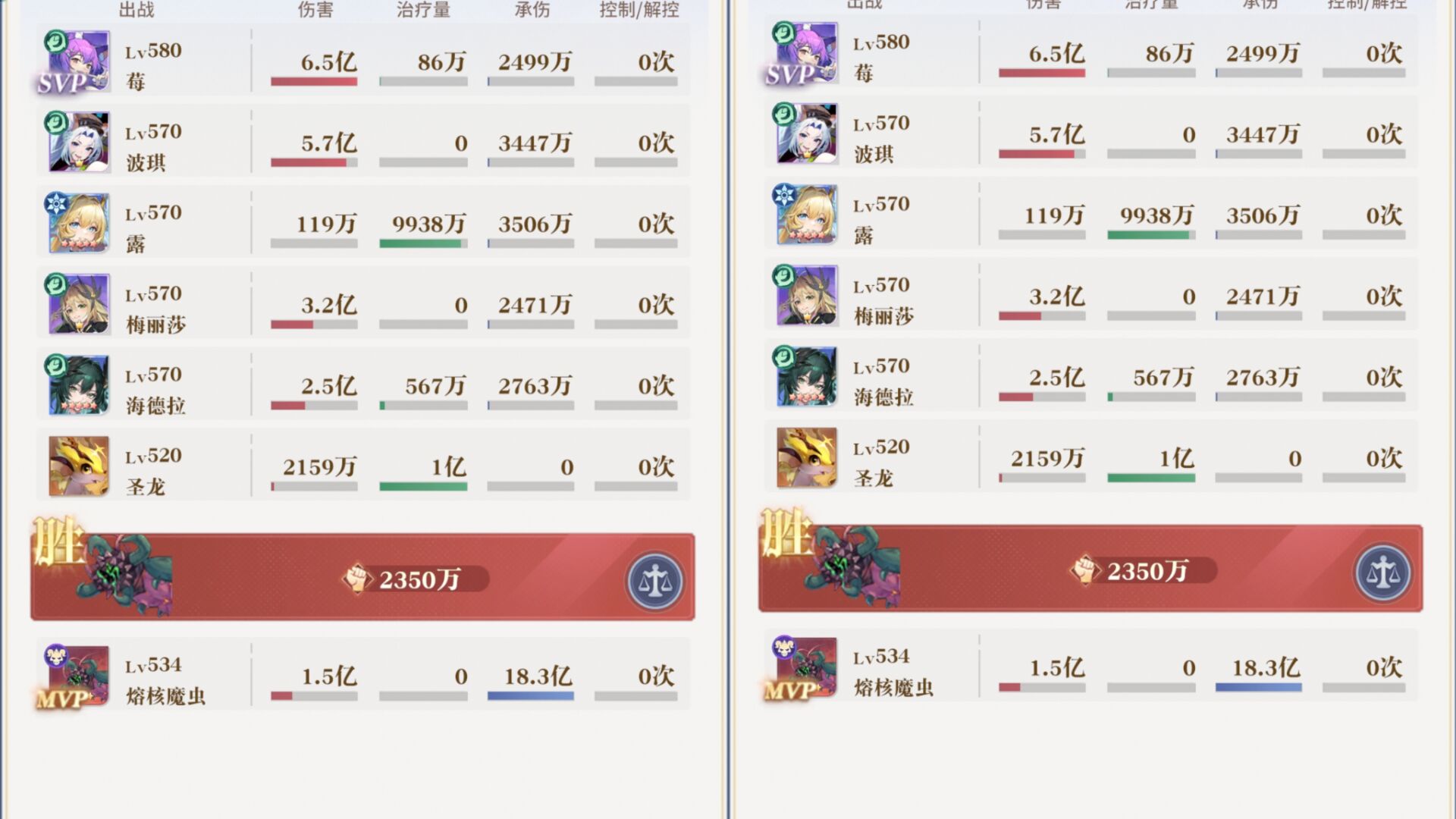 ①第一组:【永恒5星白板海德拉】打夜魔:魔虫输出为2.5亿。