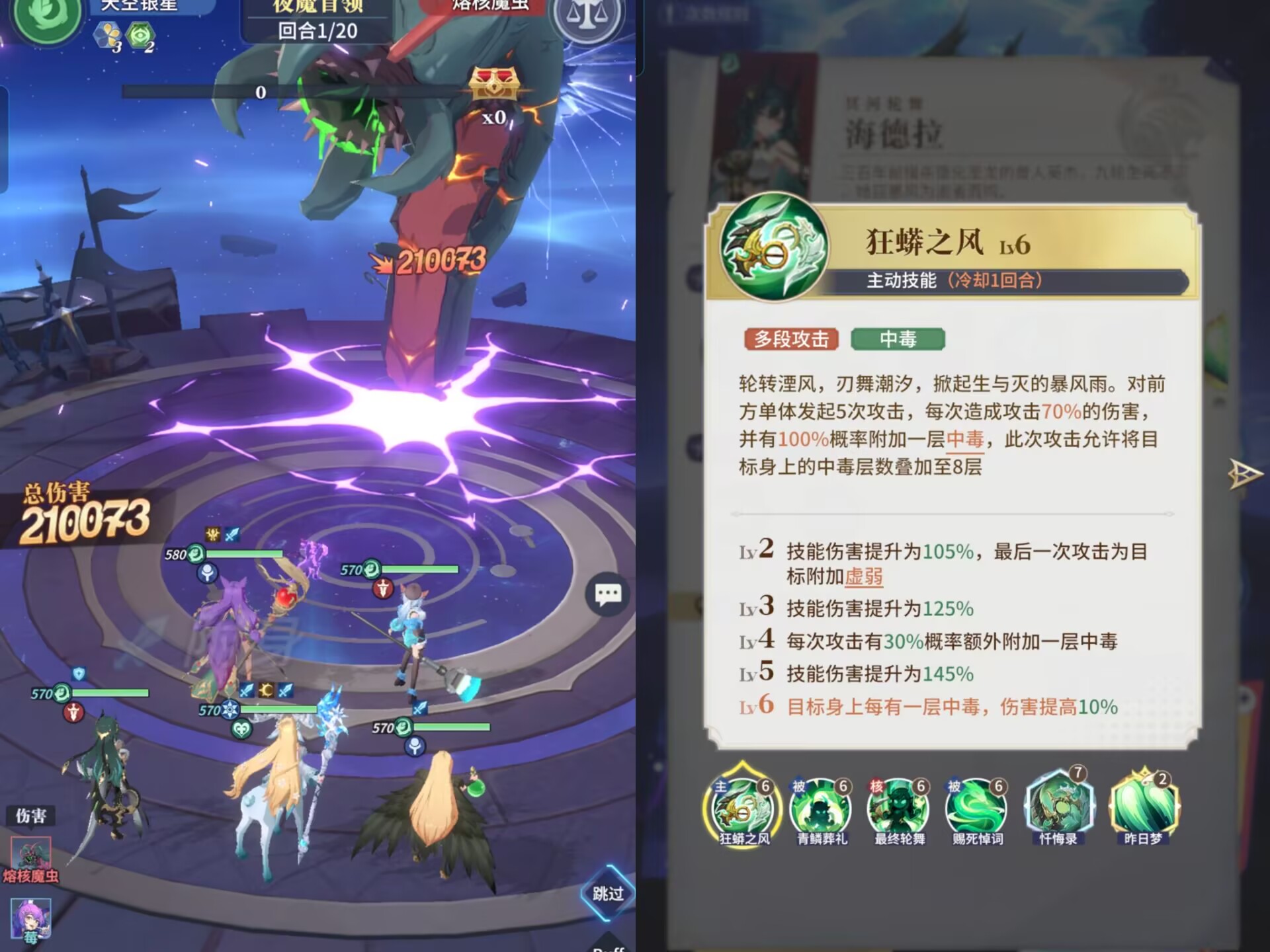 ⭐【悼词】5层后:①海德拉:一技能不在是对位单体攻击,而是优先攻击敌方中毒最少的单位,能够快速让中毒最少的目标叠毒起来。