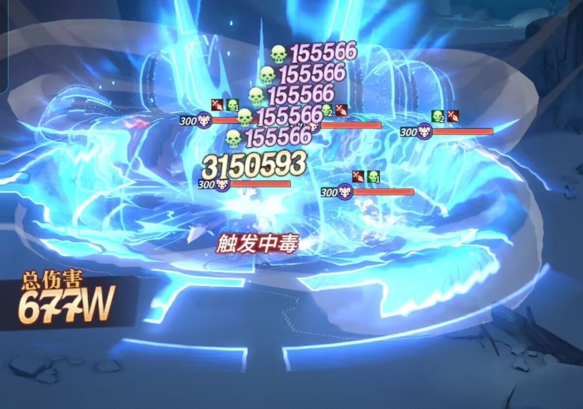 ②2次攻击后随后对中毒层数最多的目标追击一次单体攻击,这个追击伤害最大可以造成845%倍率的伤害,并且触发额外的70%倍率的中毒伤害。