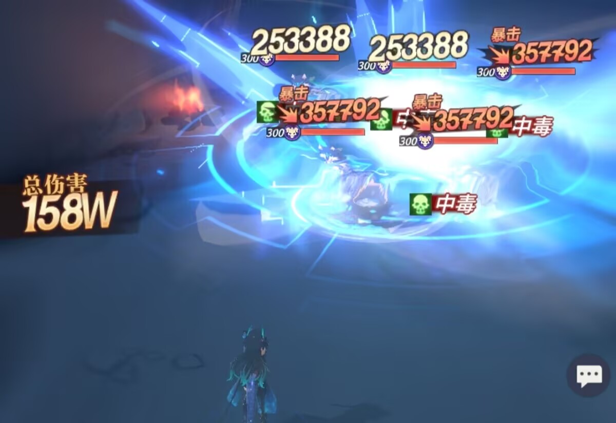 ①全体aoe伤害,能够攻击敌方2次!每次造成30%倍率伤害,并且有40%几率给目标叠毒。