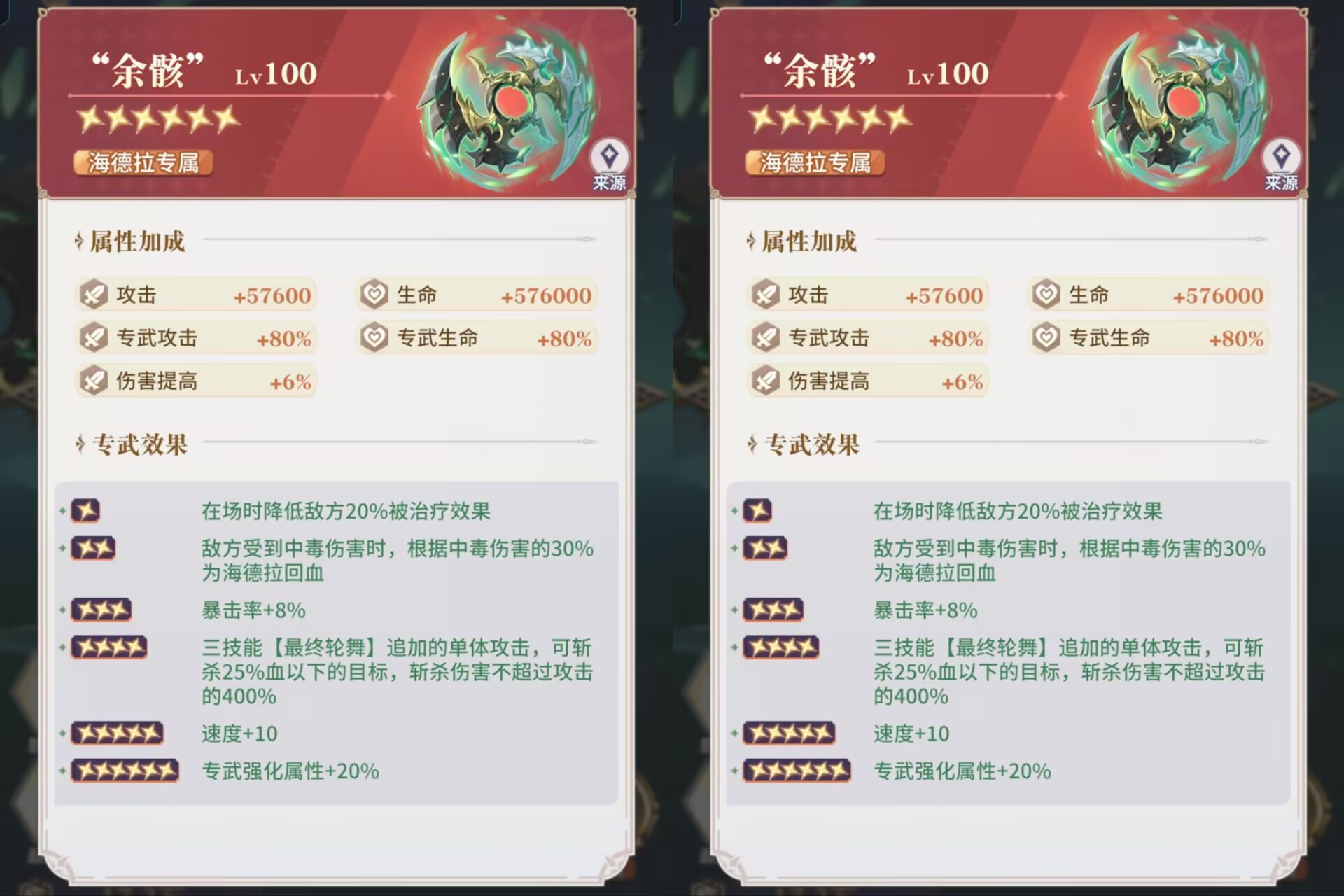 ⭐有条件的玩家最好抽到冠1起步+4星专武!专武对海德拉的加成很重要,可以说专武才是海德拉发挥出100%的实力所在。