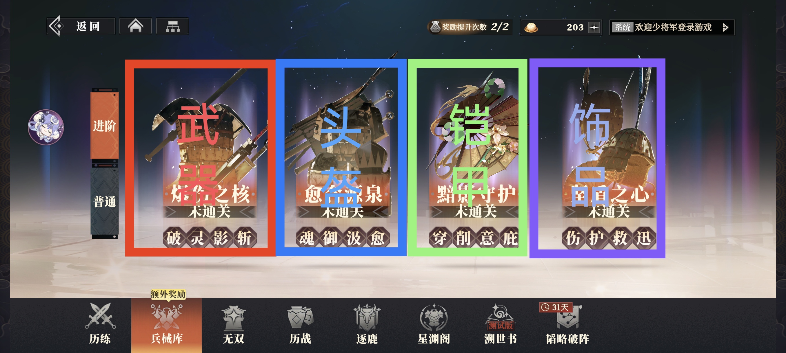 与精铸系统同步开启的兵械库新副本,四大副本对应四个部位精铸石的掉落。
