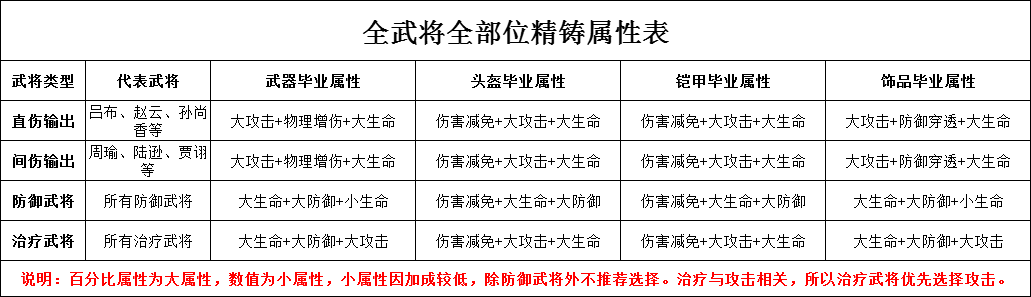 二、全武将全部位精铸属性推荐为方便玩家查阅特此整理全武将全部位精铸属性表!