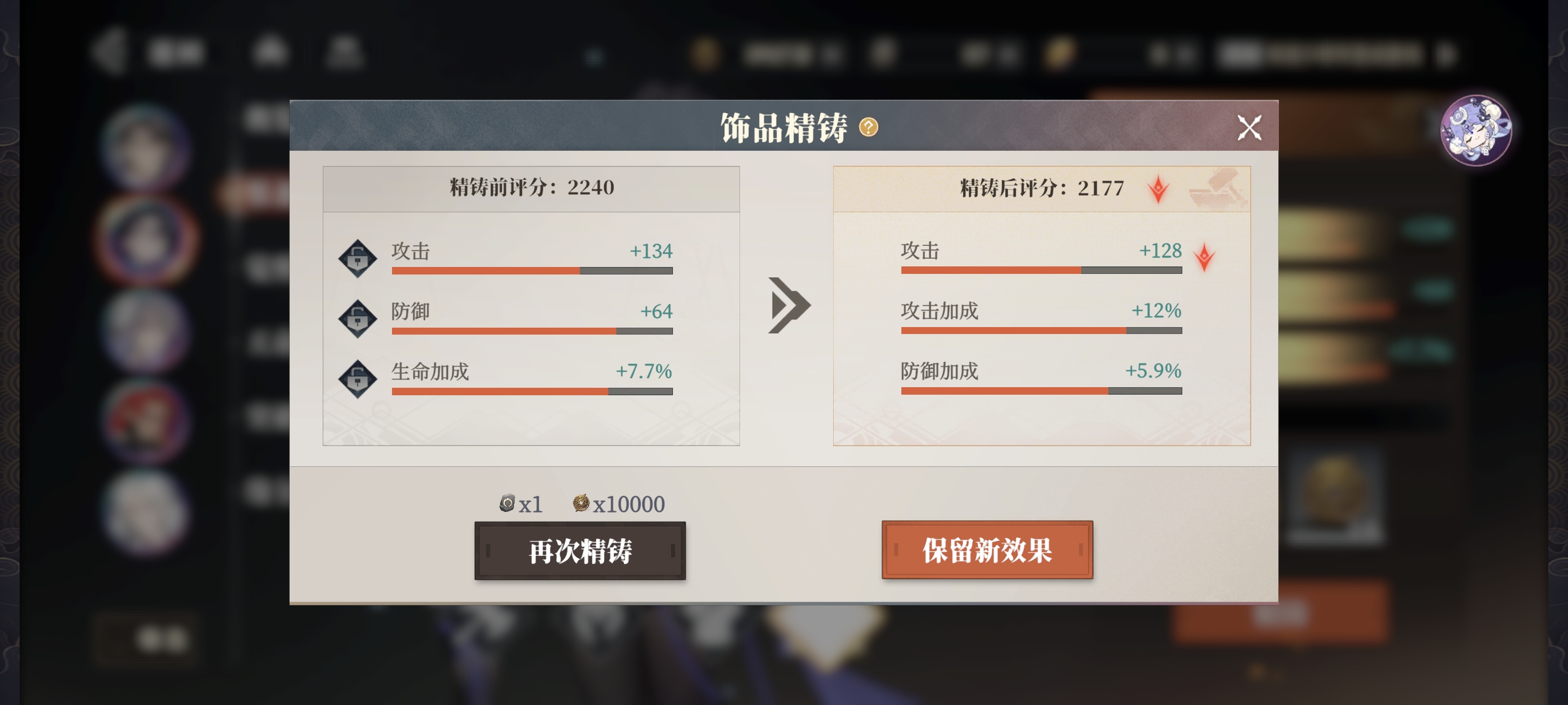 ②、精铸位会随着精铸次数稳定提高属性数值上限,但每次精铸的数值并不是一定会增加的。(增加的只是上限)