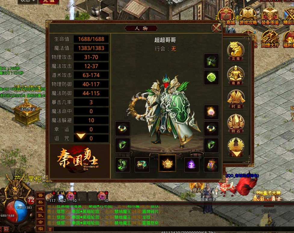 安全区左上,包括了项链幸运和装备附魔。附魔石,我目前没打到,应该是只能兑换,需要极品神铁加500强化加50W金币。材料需求量还是有点大的,建议兄弟们装备不容易替换的时候在搞。