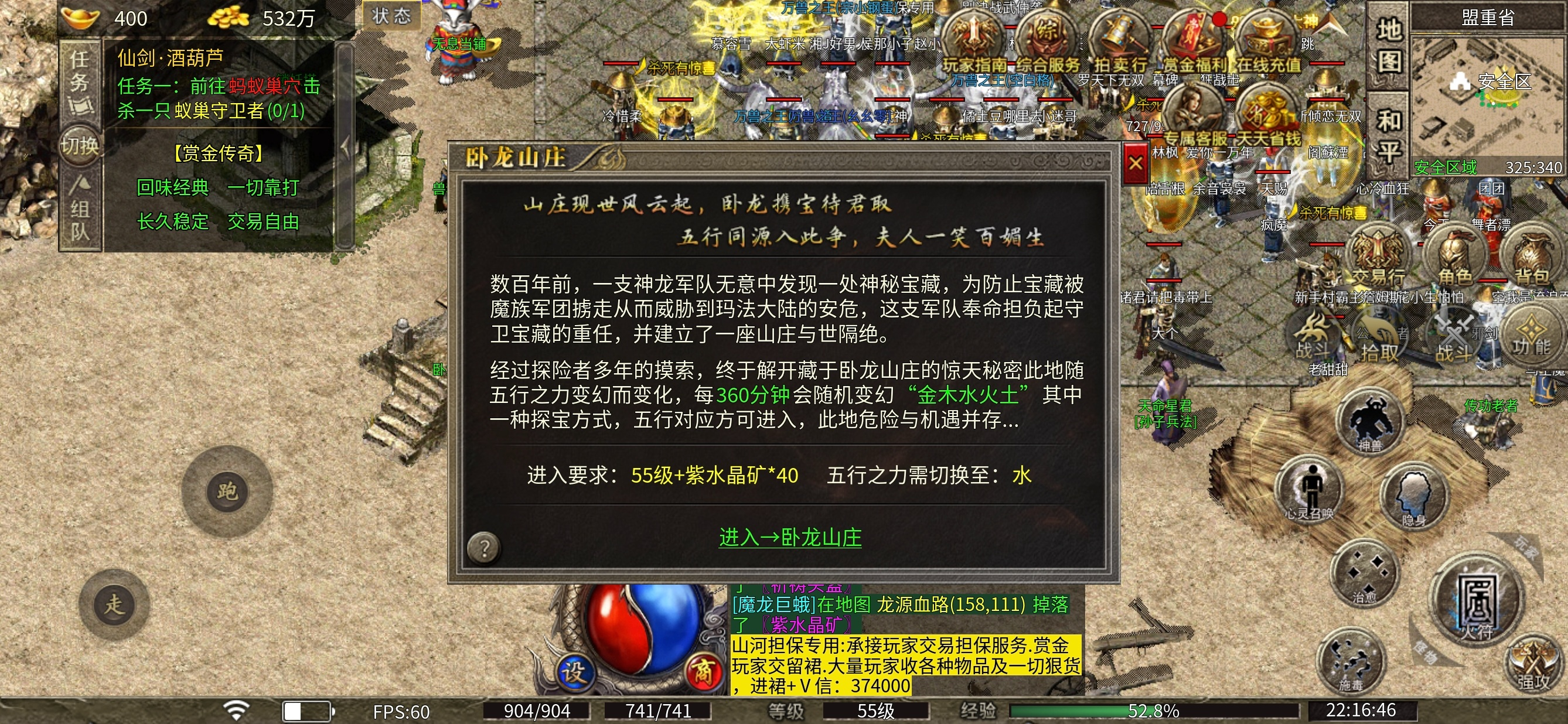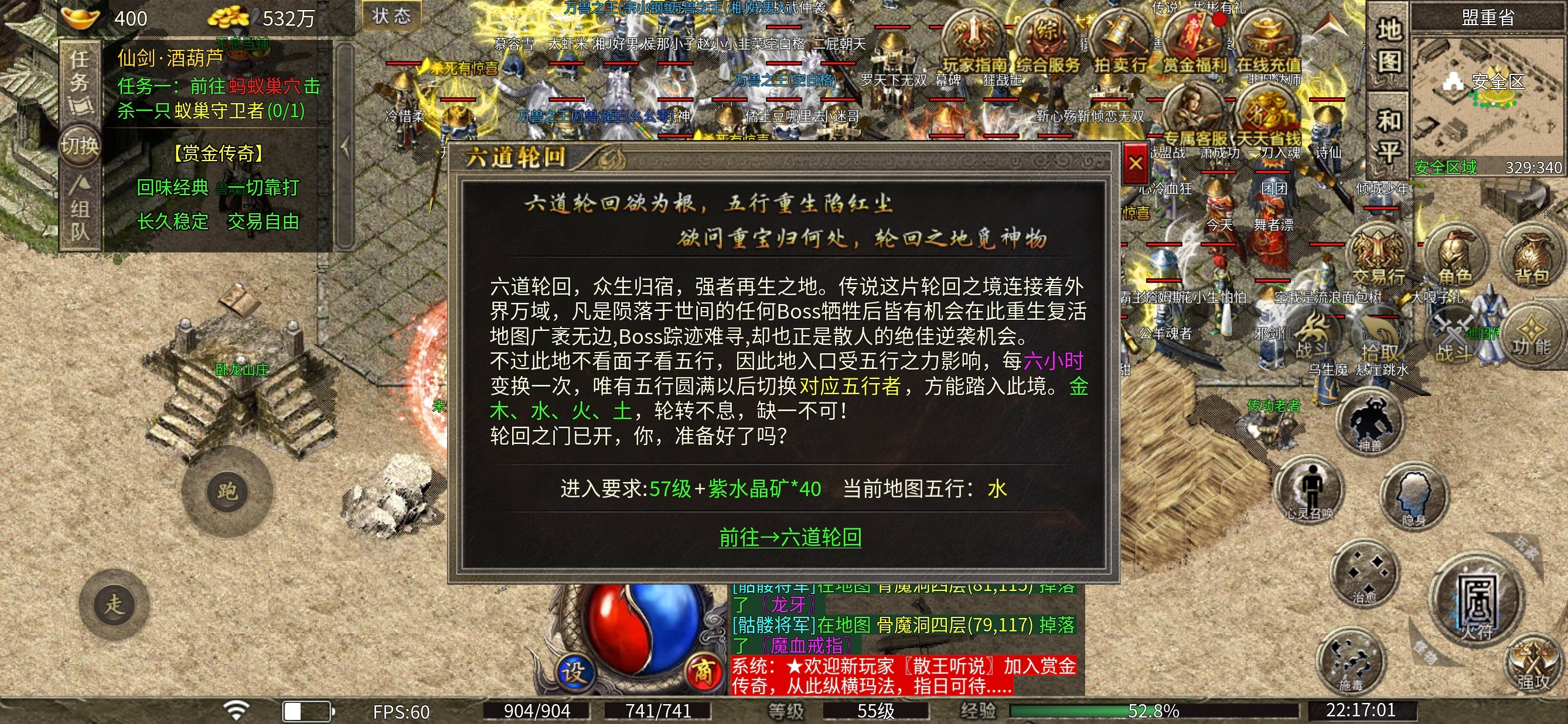 卧龙山庄和六道轮回,达到对应的等级和五行方可进入