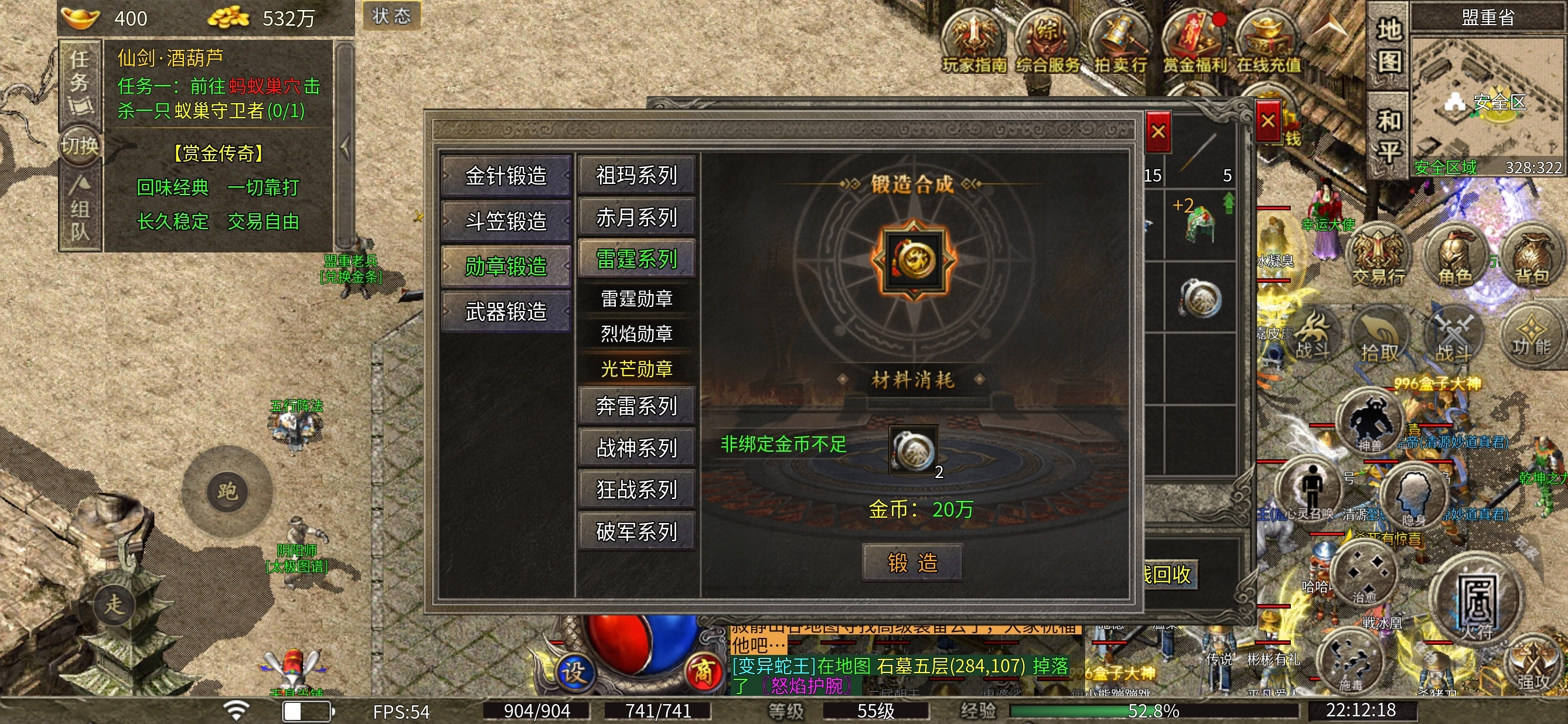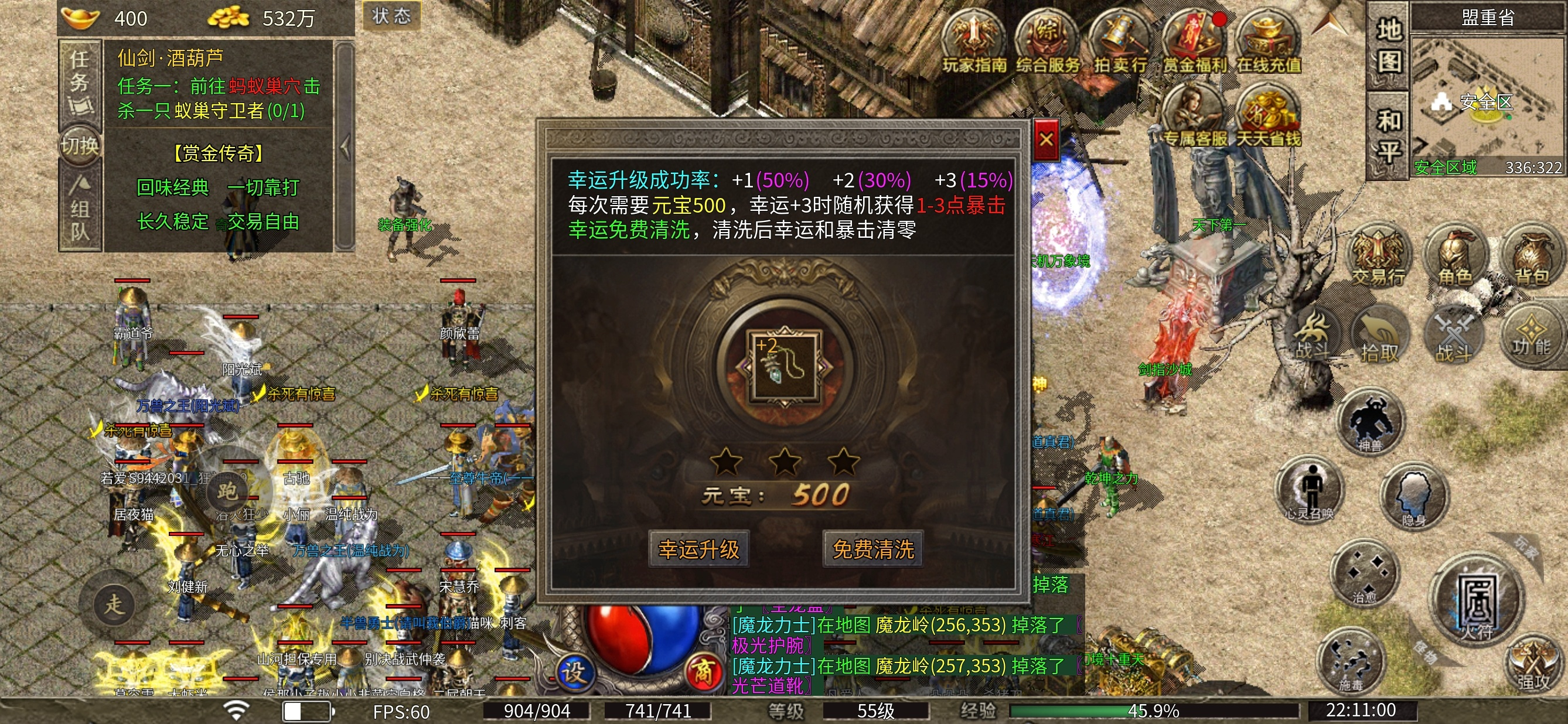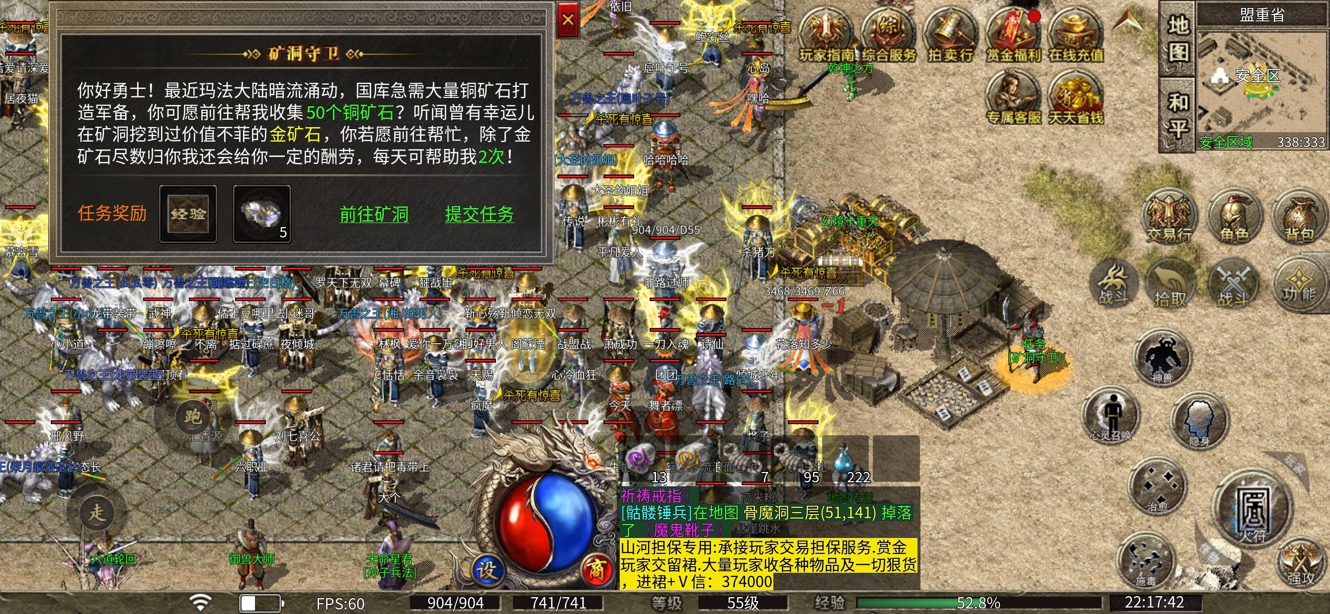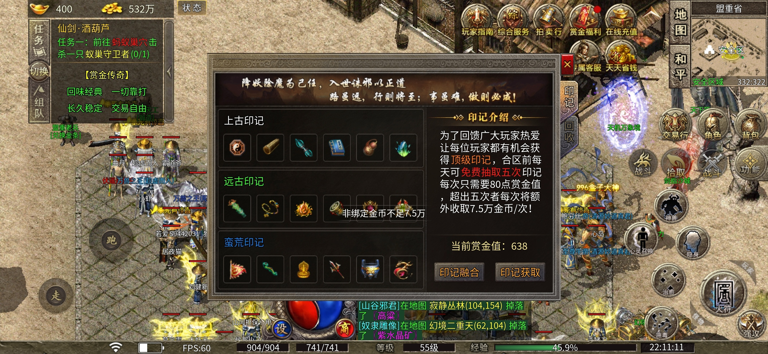 6.和区后首充号没有金币,可打的地图几乎没有,哪怕进入了紫矿石地图 也是人多怪少,并且随时有被击杀的风险。