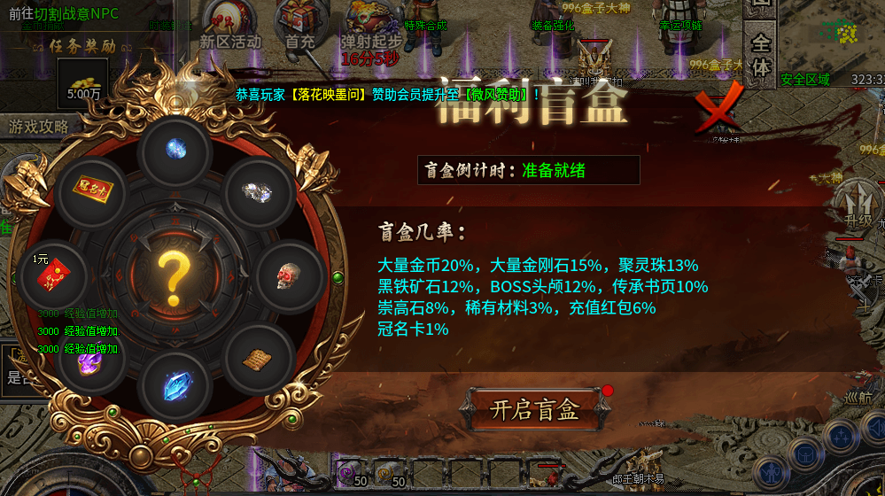 “福利盲盒” 充满惊喜,大量金币、金刚石、聚灵珠等好东西都在里面,最高概率 20% 能开出大量金币,拼拼运气说不定就能一夜暴富。