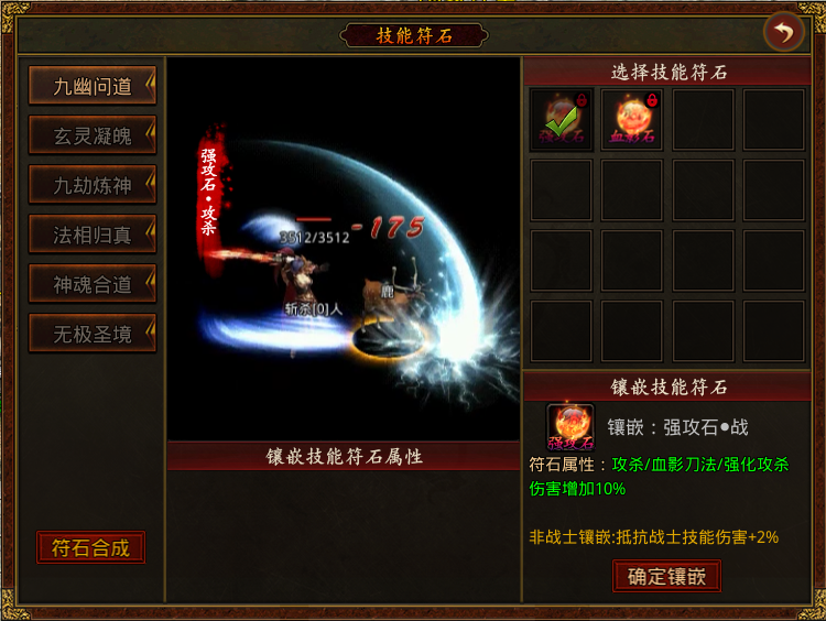 符石系统也是游戏中非常有特色的玩法之一,在总数高达54种的符石类型中,每一种都附带不同的buff属性,玩家通过刷怪获取符石并合成到更高品级,再按照需要选择特定buff的符石直接嵌入到技能中,给技能增强能力。也就是说,同样的职业,同样的等级,可能放出同样的技能后效果却有明显差距,给玩家们带来了更多的追求上限。