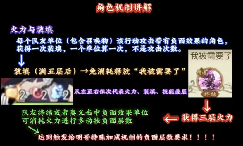 5层装填会自动刷新行动并且免消耗释放一次我被需要了补充火力【装填】,己方全体(包括召唤物)释放技能命中流血、燃烧、虚弱的目标,就会让Baby5获得一层装填,每个回合每个角色只能触发一次,这里实际上想要快速叠满5层装填还是有一定难度的。托波雷尔,玩具士兵,明哥分身这几个的优先级会非常高,实战中大家只需要记住己方角色出手个数即可,5个就必定可以触发。