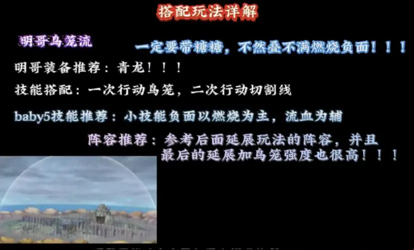 第二种玩法就是明哥的鸟笼流,这个鸟笼从这个角色出来为止,就是没有用的,这次也算是派上用场了。那么对应的Baby5加成便是燃烧,青龙套是优先级更高的,毕竟一回合可以鸟笼终结加切割线的斩断,伤害还是十分可观。
