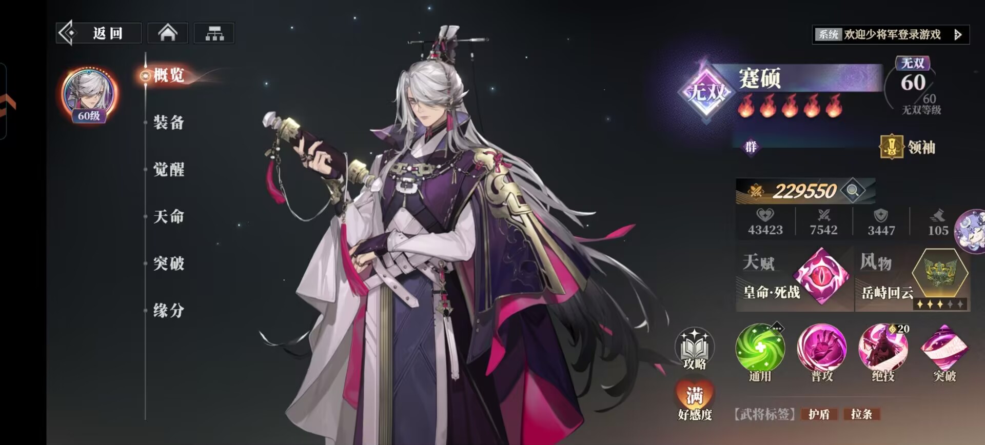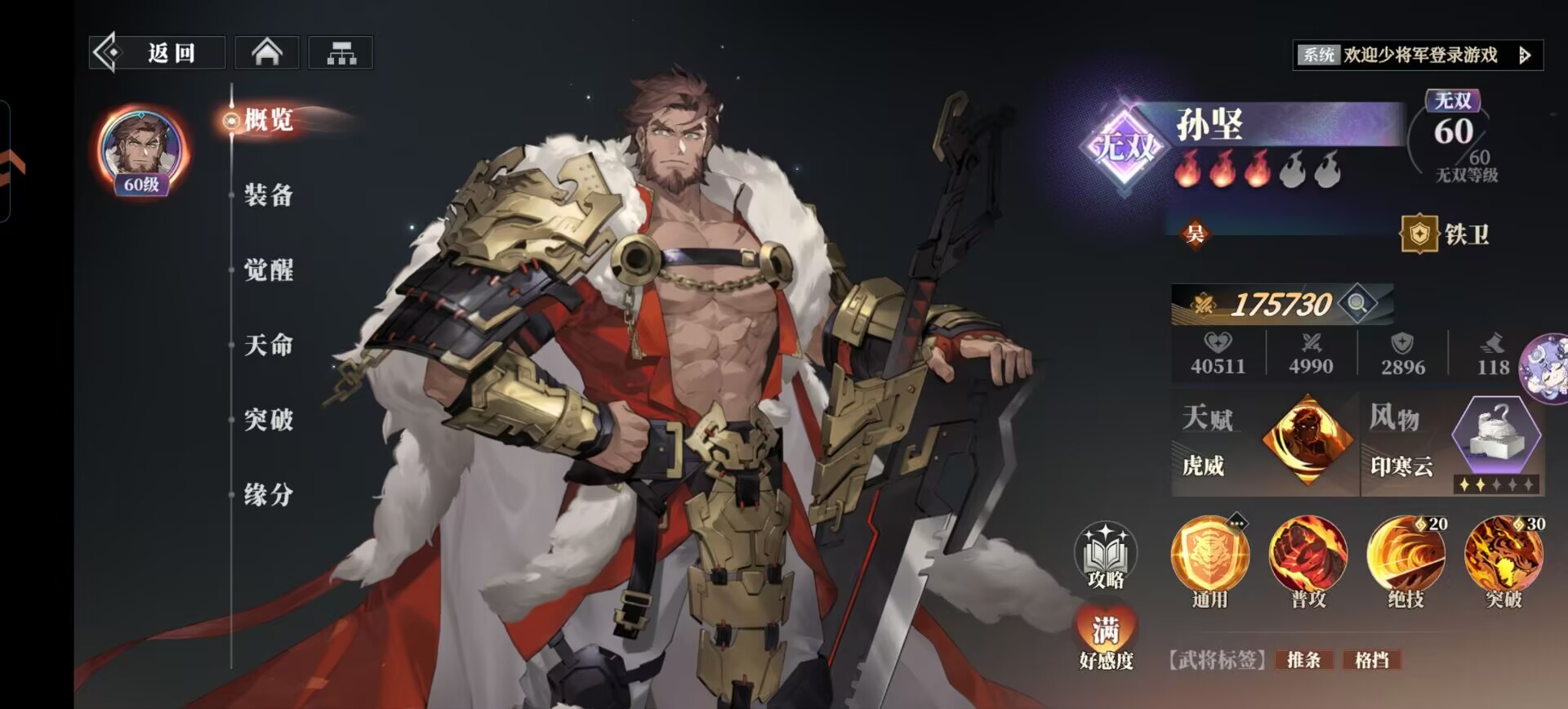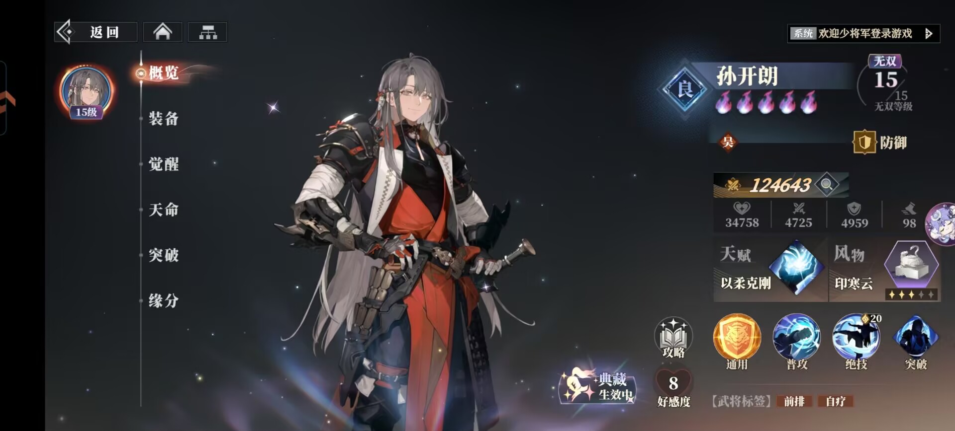 孙开朗绝技看情况使用即可。